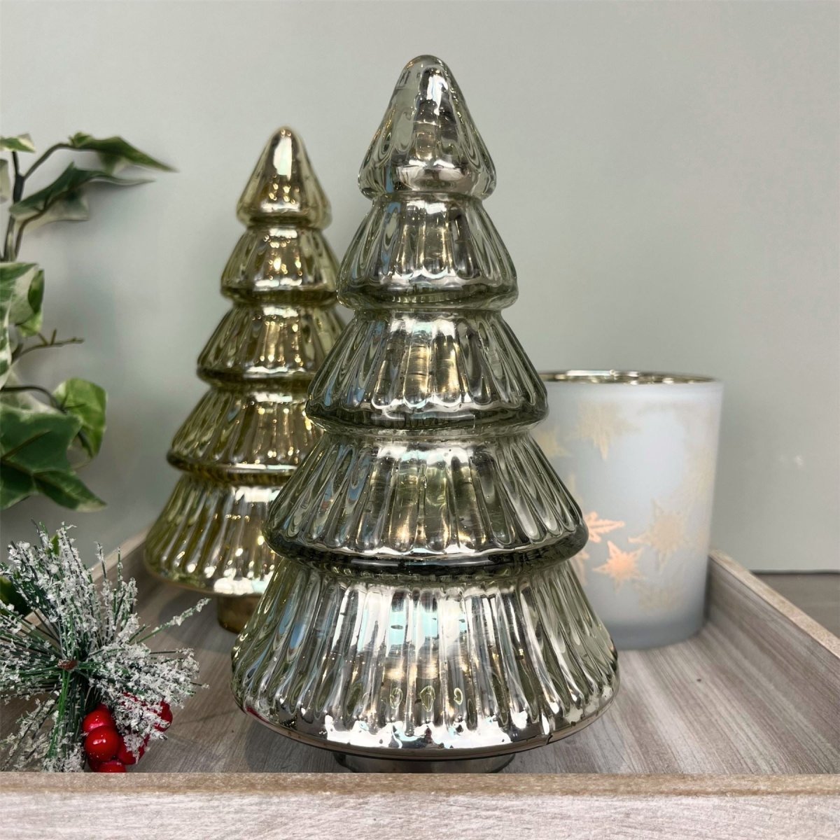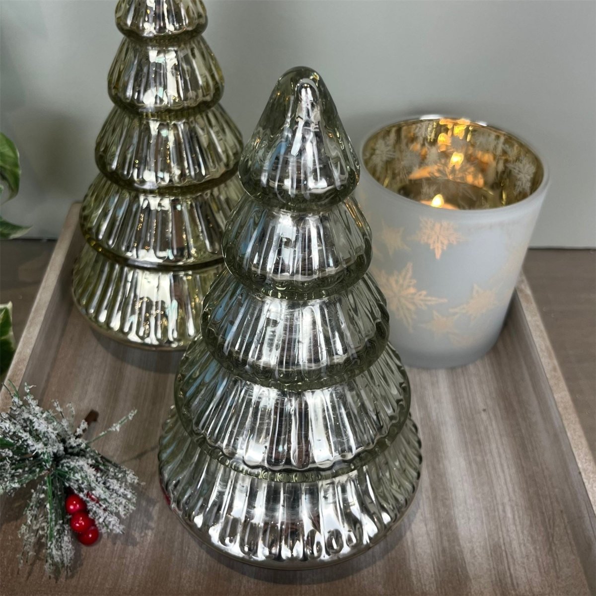 GLASS CHRISTMAS TREE | This stunning Silver Glass Christmas Tree is not just any decoration; it’s a dazzling work of art! Crafted from high-quality glass and finished in an exquisite silver, it brings a sophisticated elegance that will instantly brighten your festive decor