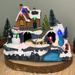 Traditional Christmas Village Scene | LED Light-Up Ornament with Movement - 20cm