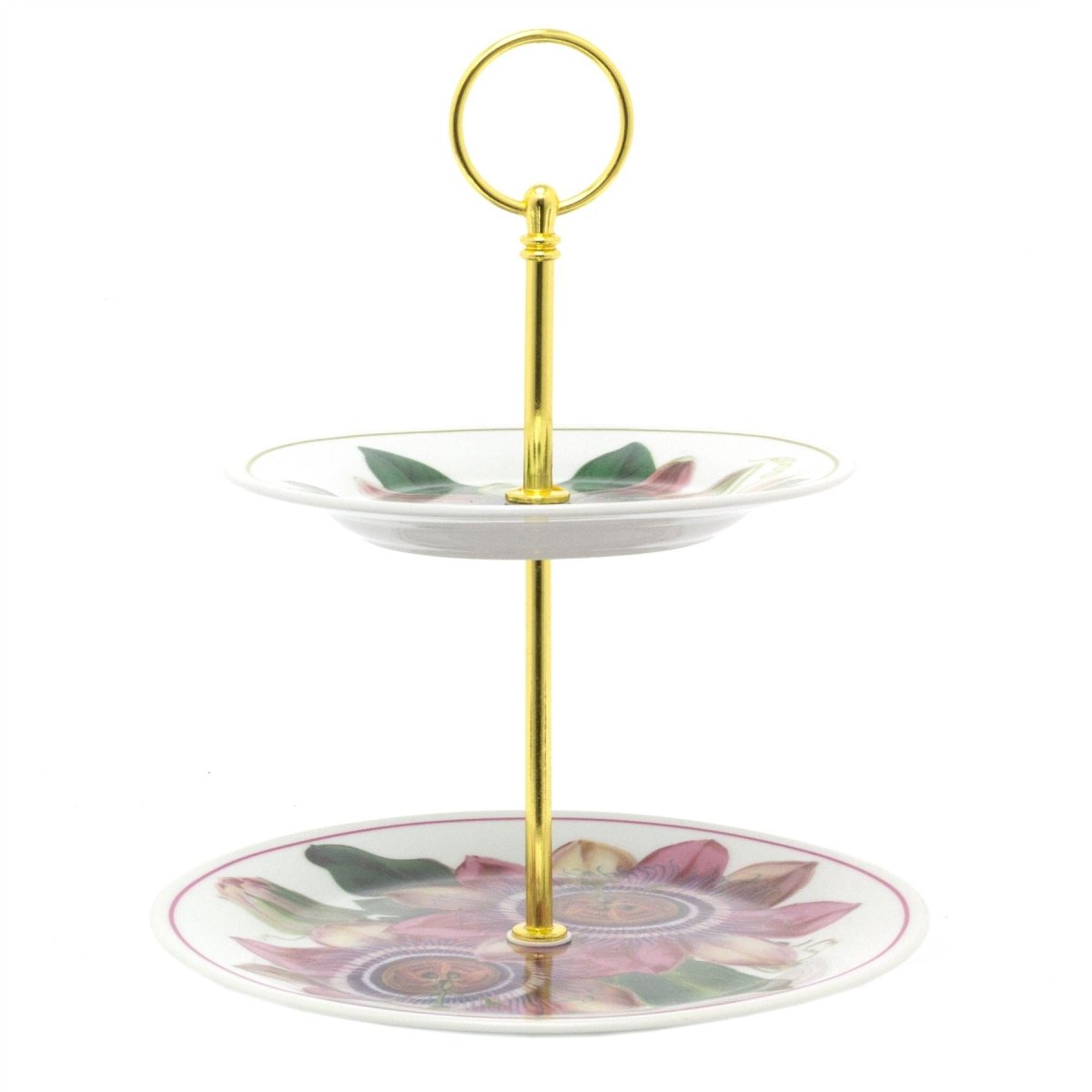 An elegant 2 tier china food stand, perfect to display and serve a wide range of foods at parties, weddings, or simply to create an eye-catching afternoon tea