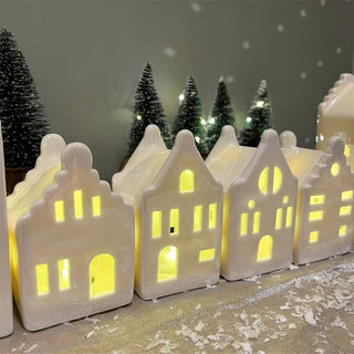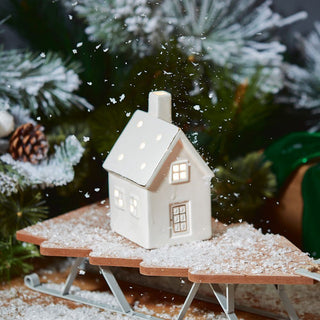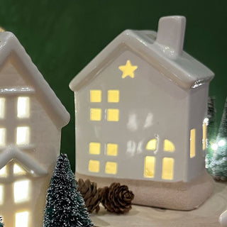 White Ceramic LED House | Light Up Christmas Ornament | Christmas Village Decor - 14cm