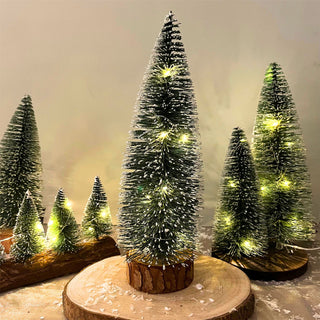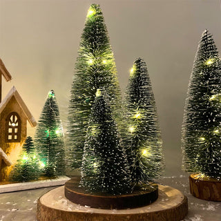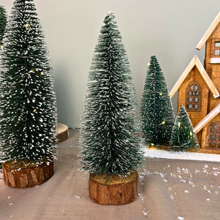 LED Bottle Brush Christmas Tree | Snowy Green Pine Christmas Village Tree 30cm