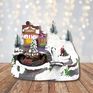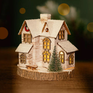 LED Wooden Christmas House with Tree | Snow-Covered Light Up Village House 44cm