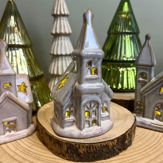 Ceramic LED Church | Light-Up Christmas Chapel Ornament Festive Decoration 12cm