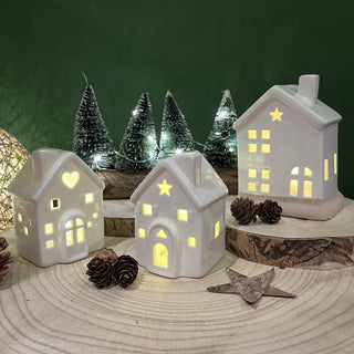 Ceramic LED Christmas House | Light Up House Christmas Village Ornament - 11cm