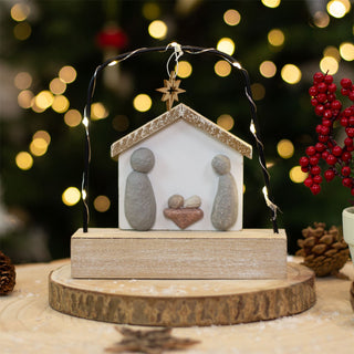 LED Pebble Nativity Set Decoration | Mini Light-up Nativity Scene Ornament 15cm
