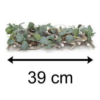 39cm Alpine Sage Four Christmas Tealight Candle Holder | Three Christmas Garland Tea Light Holder | Christmas Candle Centerpiece