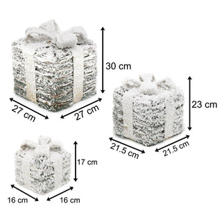 Set Of 3 LED Light Up Christmas Present Boxes | 3 Piece Rattan Snow Topped Light Up Xmas Christmas Gift Boxes | LED Christmas Parcels Christmas Decorations