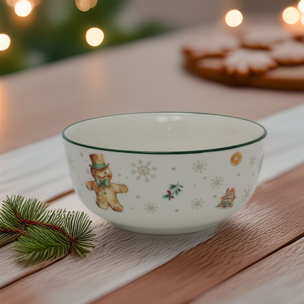 Add festive cheer with this Gingerbread Christmas Bowl. Made from durable ceramic with a charming vintage design, perfect for serving snacks, soups, or sweets