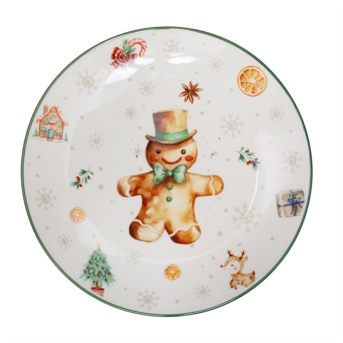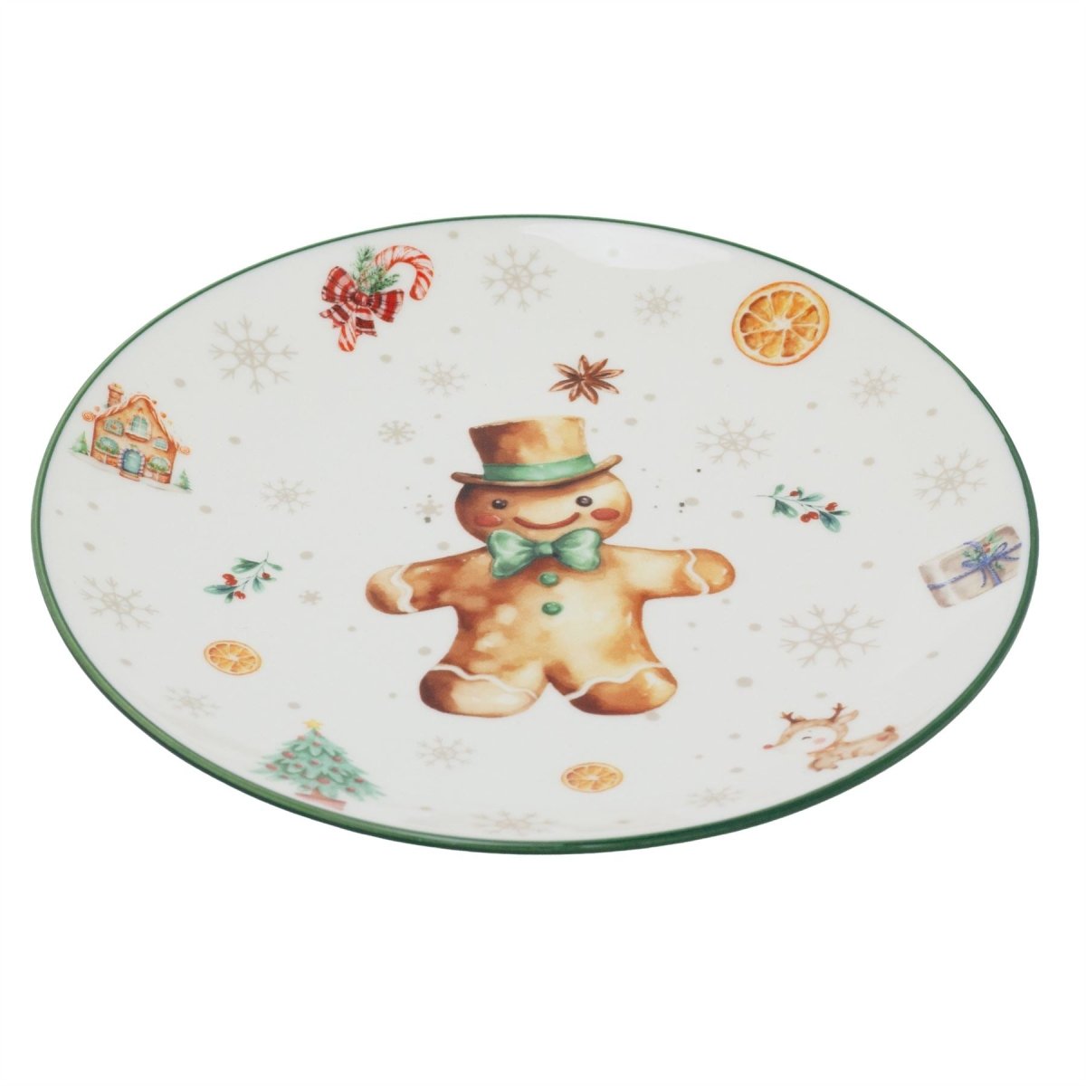 GINGERBREAD CHARM | Bring joy to your Christmas table with this cheerful plate, featuring a smiling gingerbread man and festive snowflake design