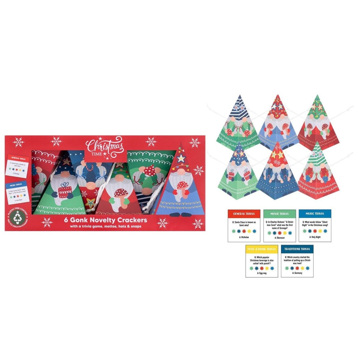 Add colour and cheer to your Christmas table with these Gonk Pyramid Crackers! Each one includes a hat, motto, snap, and a fun trivia card for laughter-filled festive gatherings