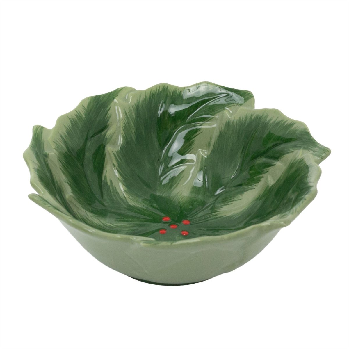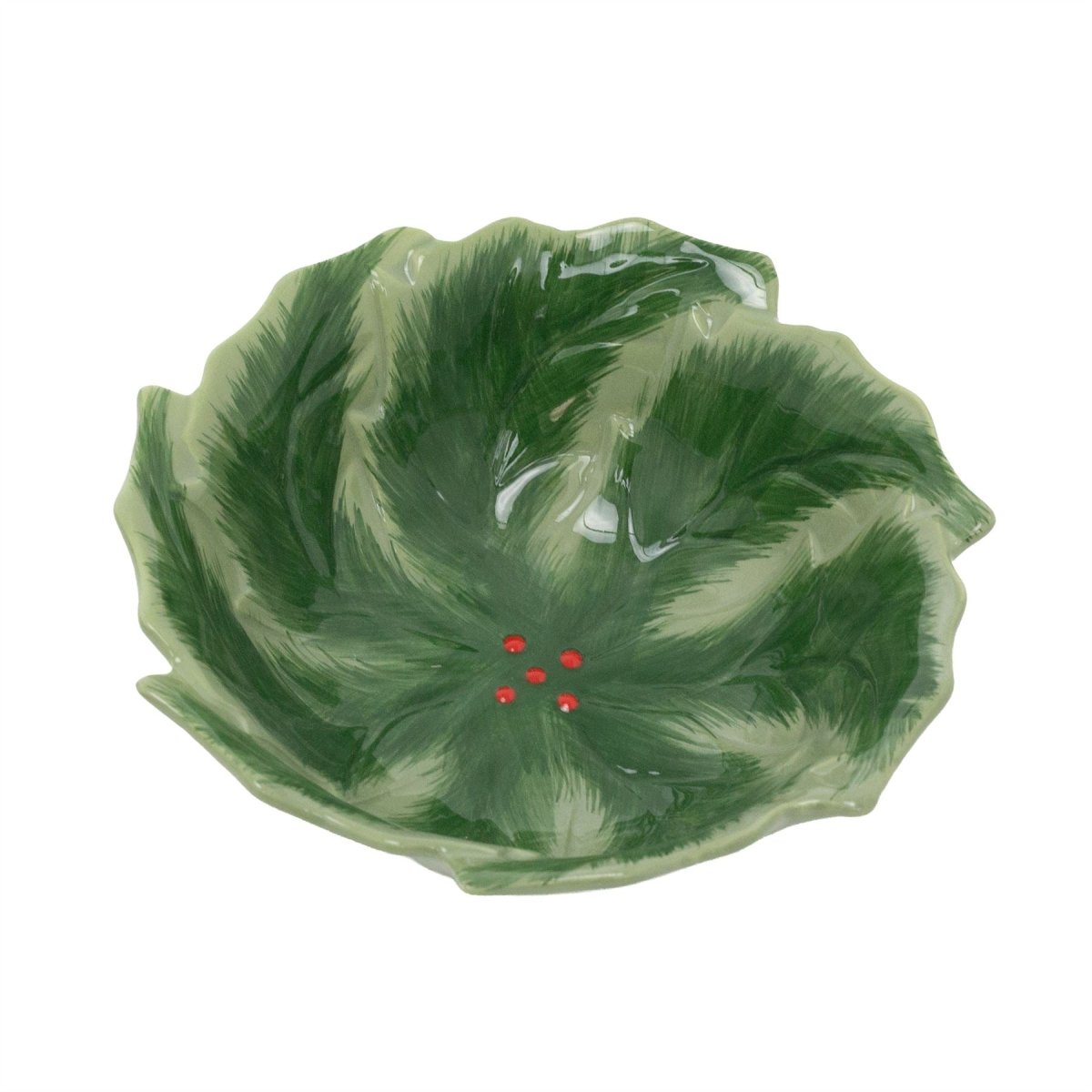 FESTIVE HOLLY DESIGN | Add a touch of Christmas charm with this beautifully sculpted holly foliage bowl, complete with delicate red berries and a glossy glaze finish