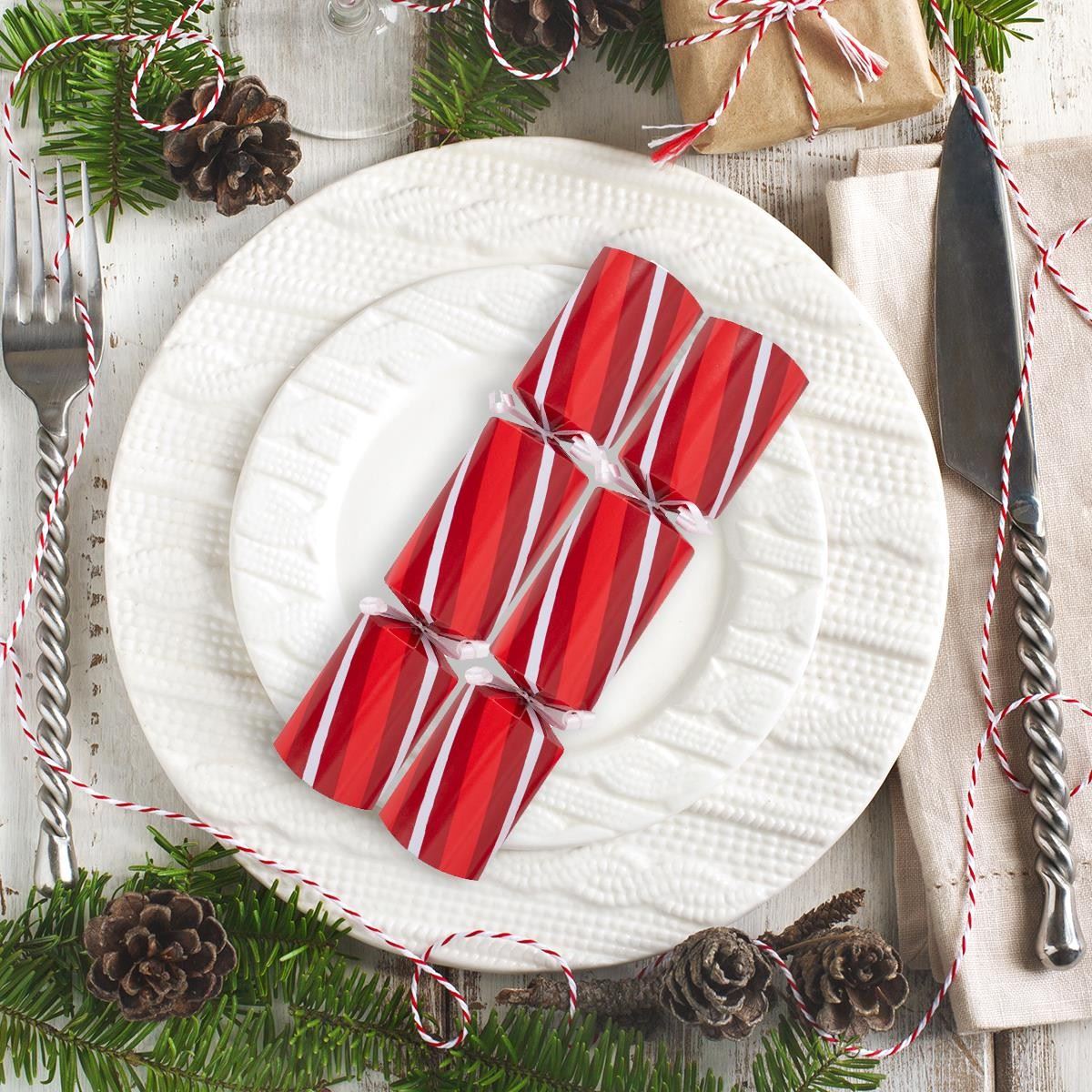 PLAYFUL DESIGN | Featuring a red and white striped cracker design, finished with curling white ribbons, a charming, traditional touch for your Christmas table
