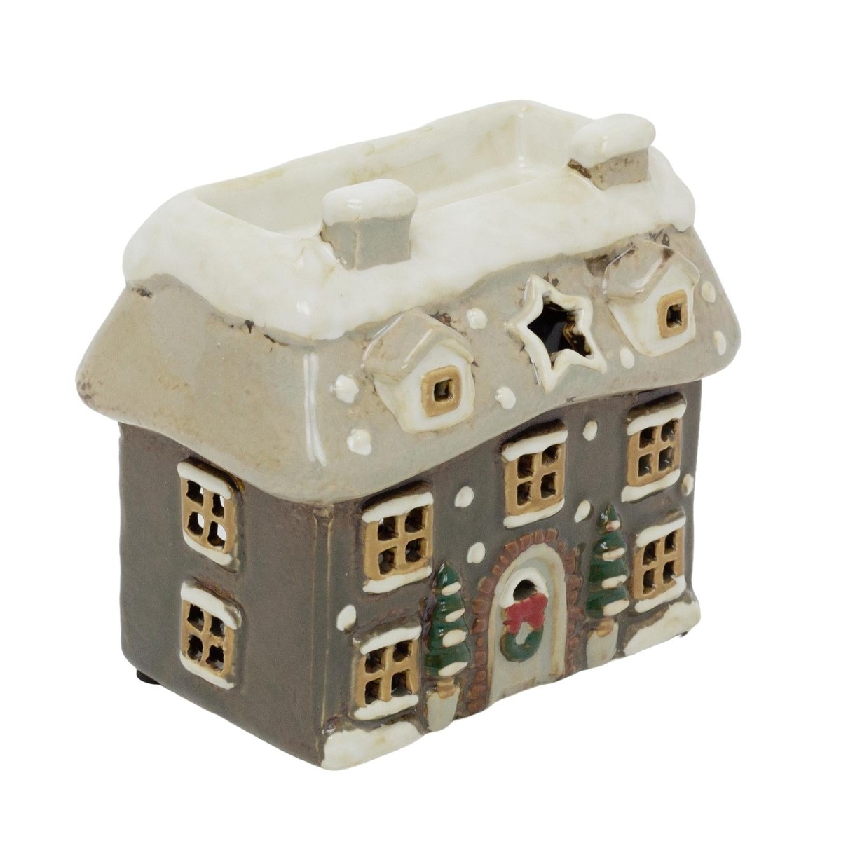 Fill your home with festive fragrance and cosy Christmas charm with this grey stoneware cottage wax melt burner. With its snowy roof, cheerful wreath and glowing windows, it adds warmth, light and delightful seasonal scent to any room