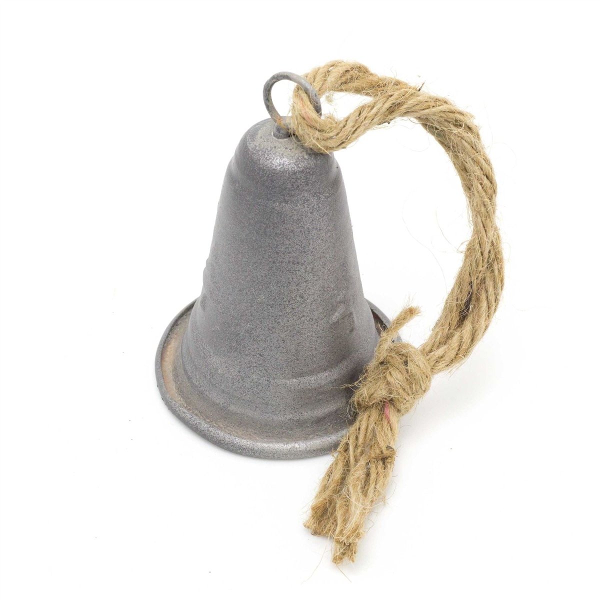 RUSTIC TREE DECORATIONS: The bell is crafted from metal with an embossed Christmas tree design complete with jute rope hanger