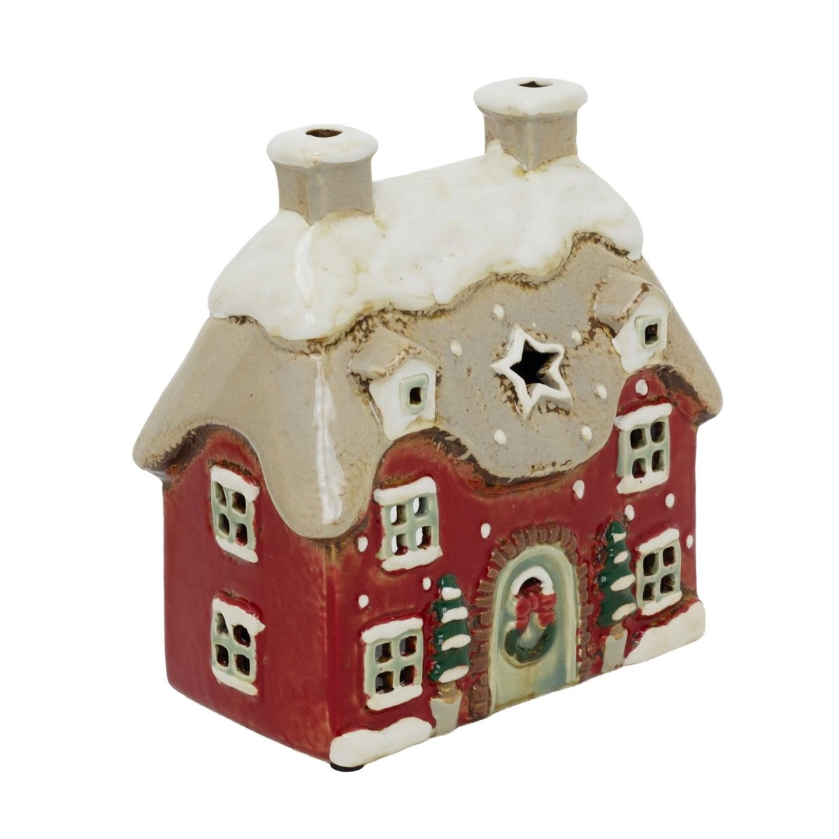Red Stoneware Christmas House Tealight Holder | Christmas Candle Holder House