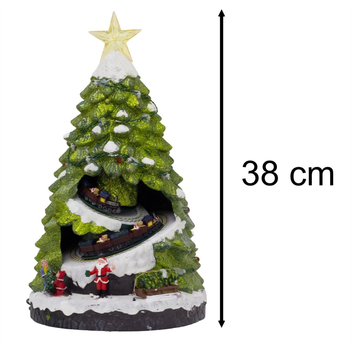 Add festive charm with this animated LED Christmas tree scene. Featuring a rotating train and colourful lights for an eye-catching holiday display