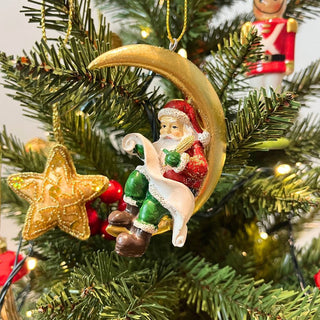 Santa on the Moon Bauble | Santa Claus Resin Christmas Tree Hanging Ornament 9cm
