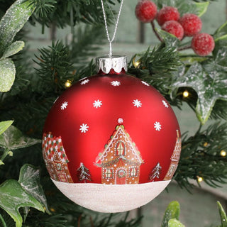 Gingerbread House Red Christmas Bauble | Christmas Tree Hanging Ornament - 8cm