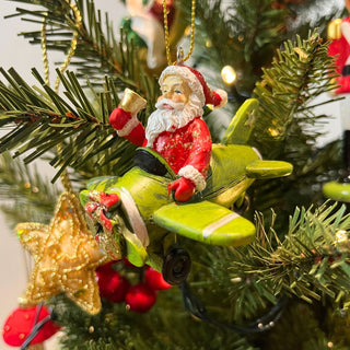 Santa in Plane Christmas Bauble | Santa Claus Resin Christmas Tree Ornament 9cm