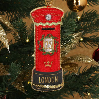 London Phone Box Bauble | Luxury Fabric Christmas Tree Hanging Ornament - 11cm