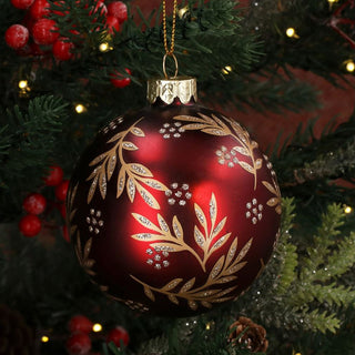 Matt Burgundy & Gold Christmas Bauble | Red Glass Christmas Tree Ornament - 8cm