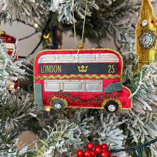 London Bus Christmas Bauble | Luxury Fabric Red Double Decker Ornament - 10.5cm
