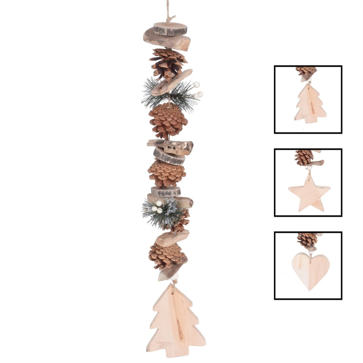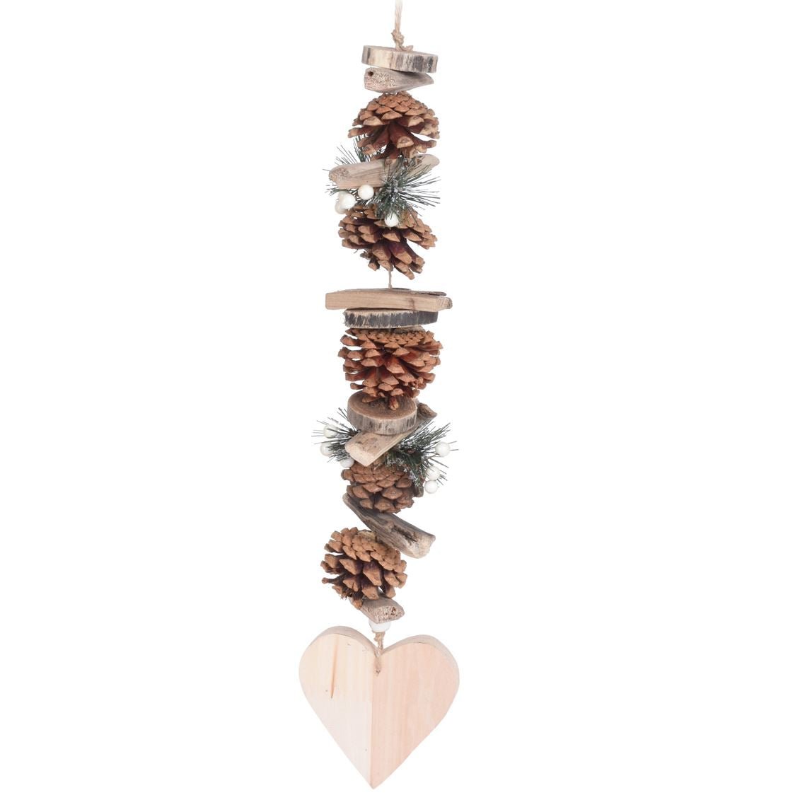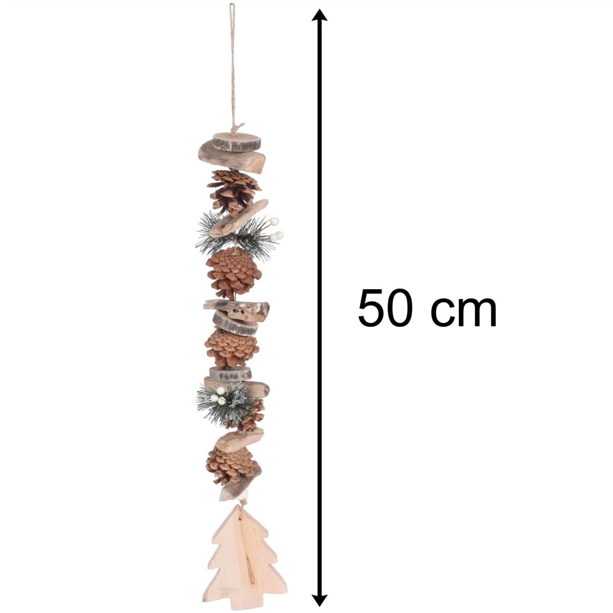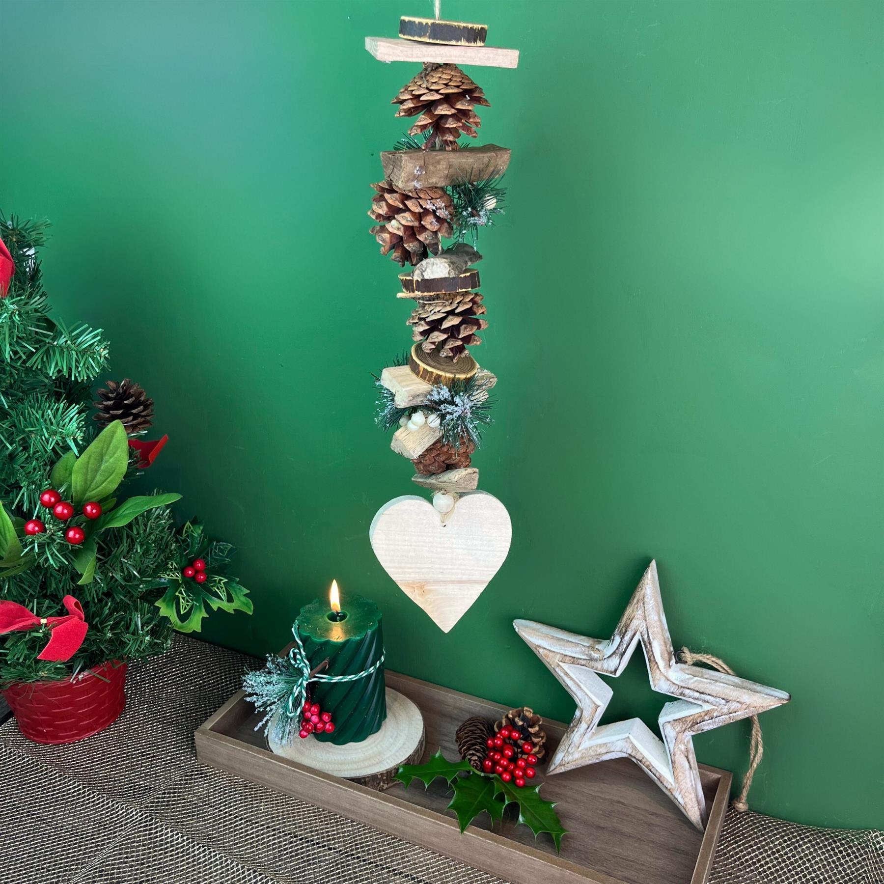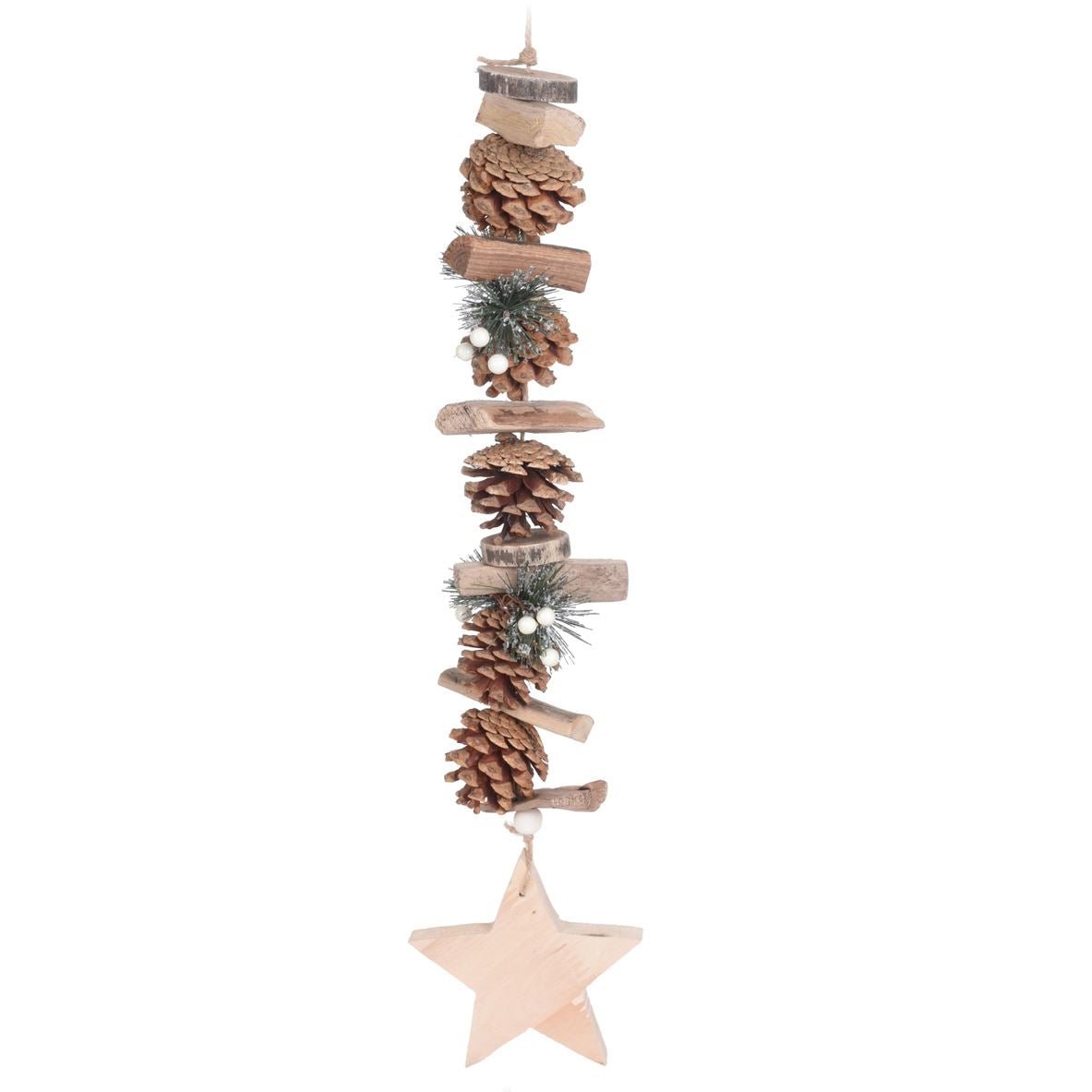 NATURAL WOOD: Christmas pine cone hanging decoration dimensions 50cm (including hanging rope) One Supplied