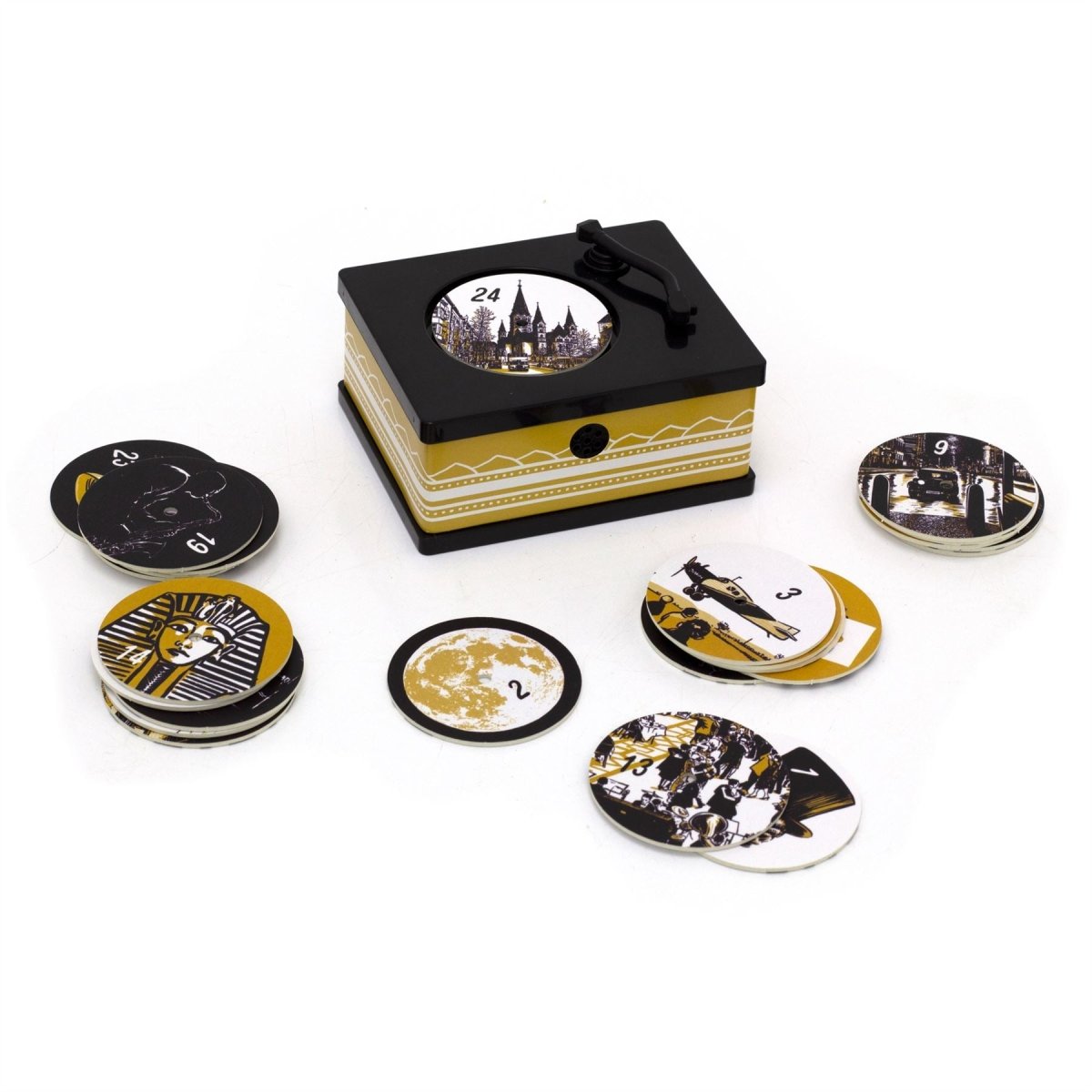 JAZZ GRAMOPHONE ADVENT CALENDAR | Dive into the Christmas spirit with this charming miniature gramophone advent calendar. Featuring 24 beautifully crafted discs, each playing a unique festive tune, it’s a delightful way to countdown to Christmas. Just move the stylus and enjoy!