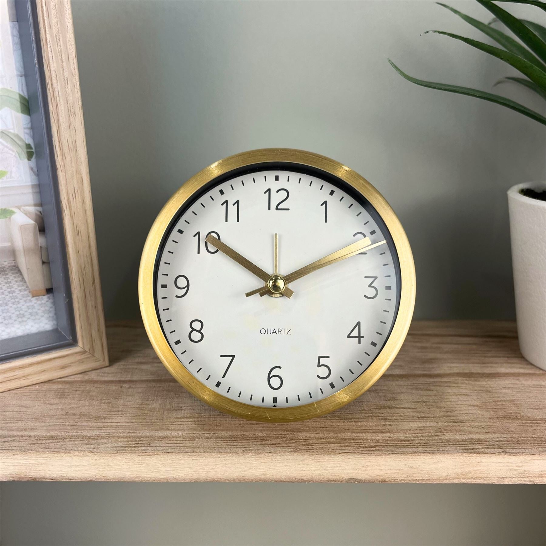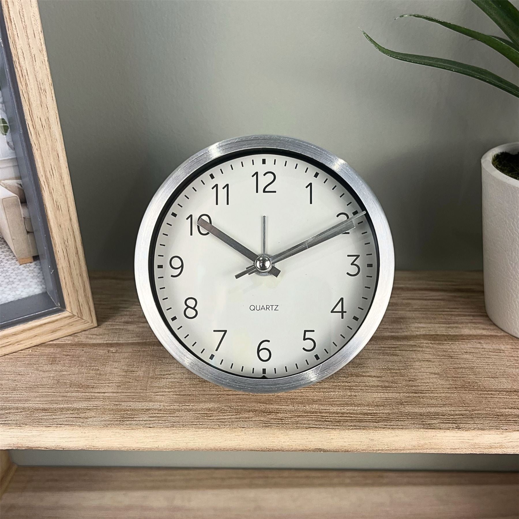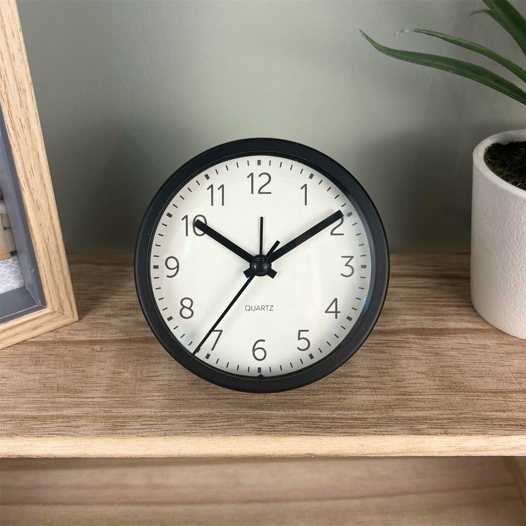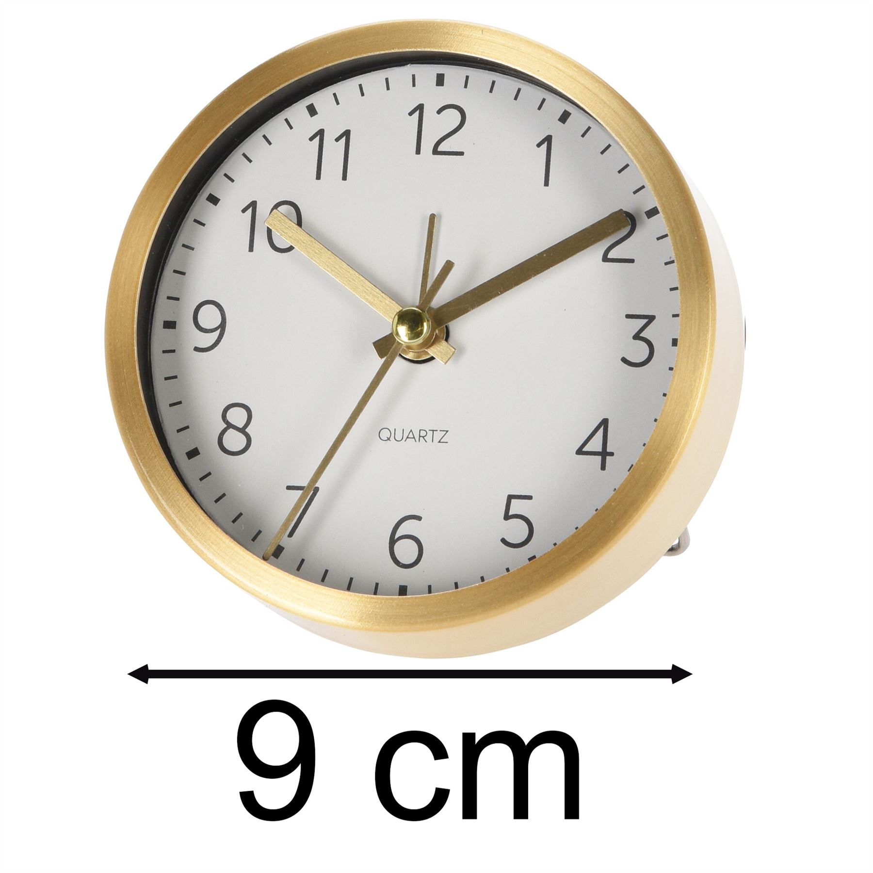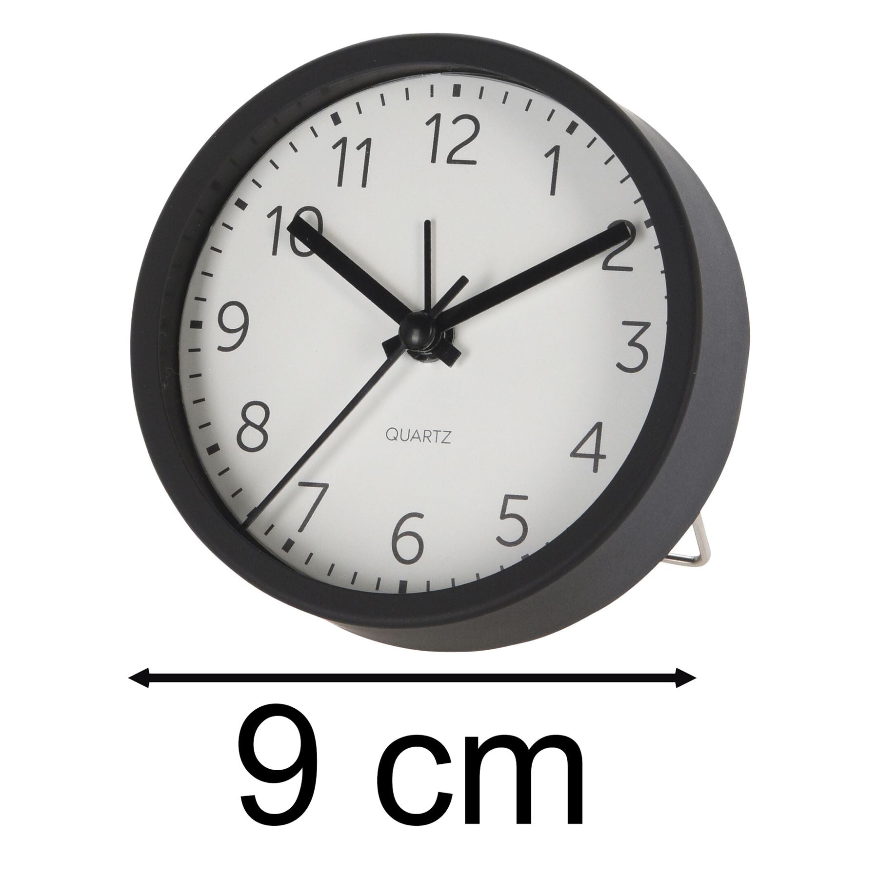 Round Analogue Alarm Clock | Modern Bedside Alarm & Desk Clock with Stand - 9cm