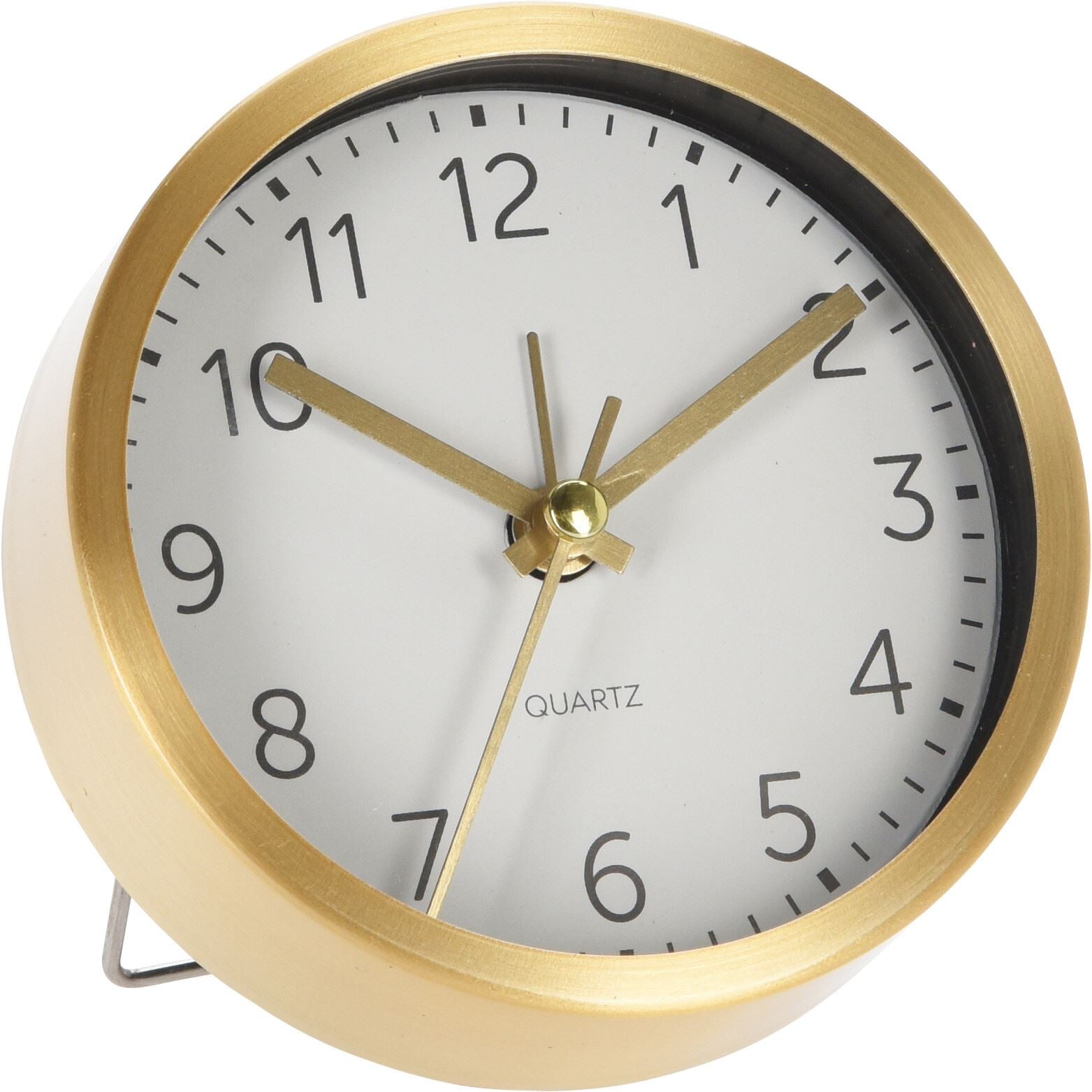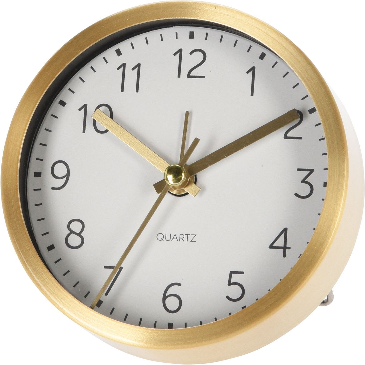 ALARM CLOCK | Embrace modern elegance with this round analogue alarm clock. Featuring a sleek aluminium frame and glass front, it adds a touch of sophistication to any room. Perfect as a bedside companion or stylish desk accessory