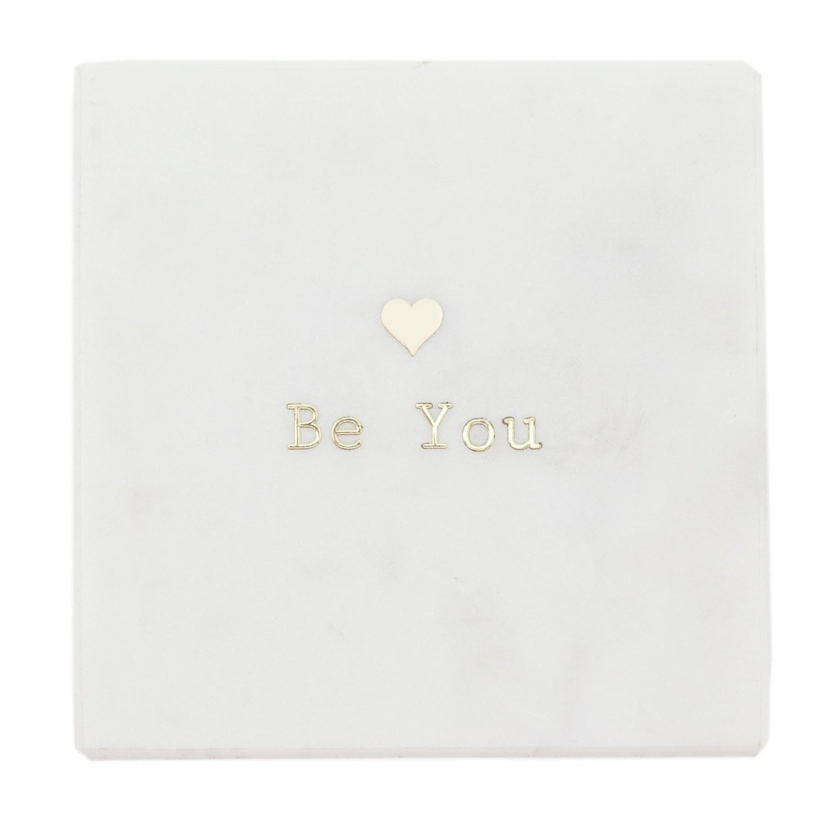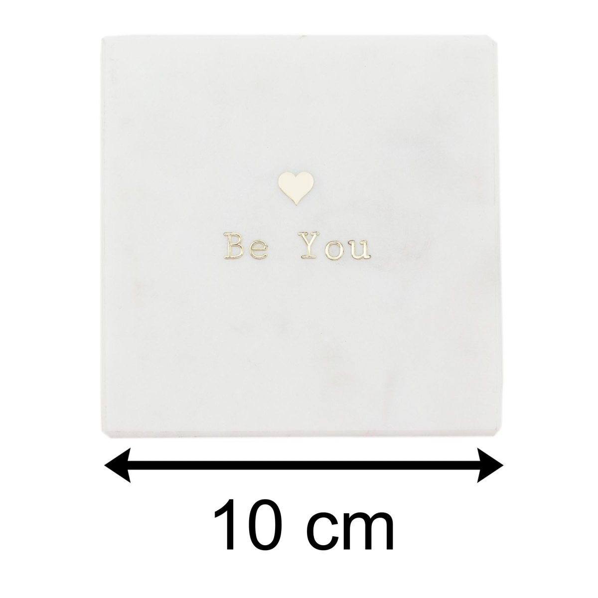HEART COASTER SET | These gorgeous coaster feature 4 bee inspired quotes 'Be You - Be Kind - Be True - Be Happy'. The marble integrates beautifully with any style of home decor and the metallic motifs give a rather luxurious edge to their look