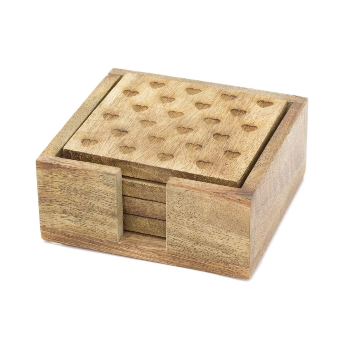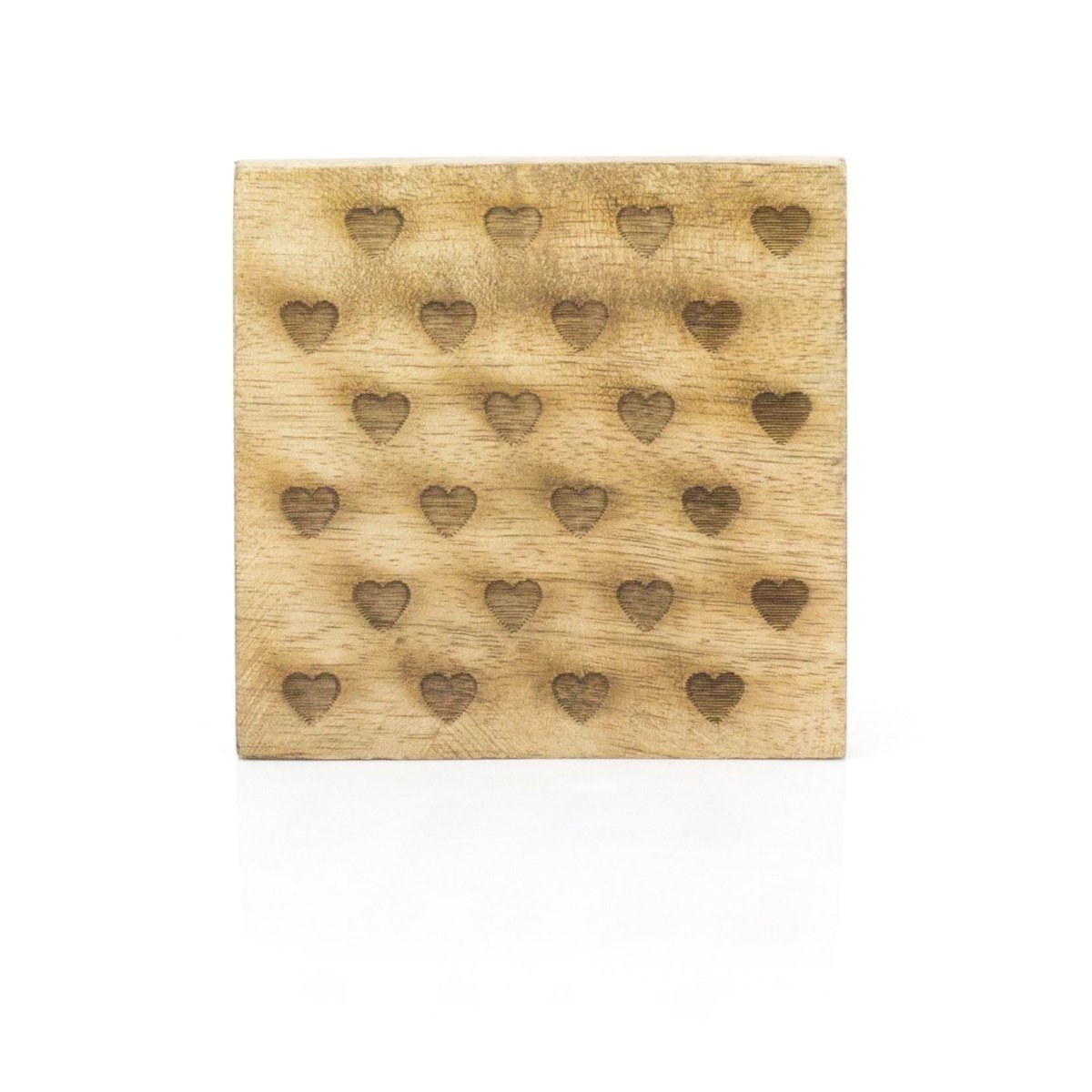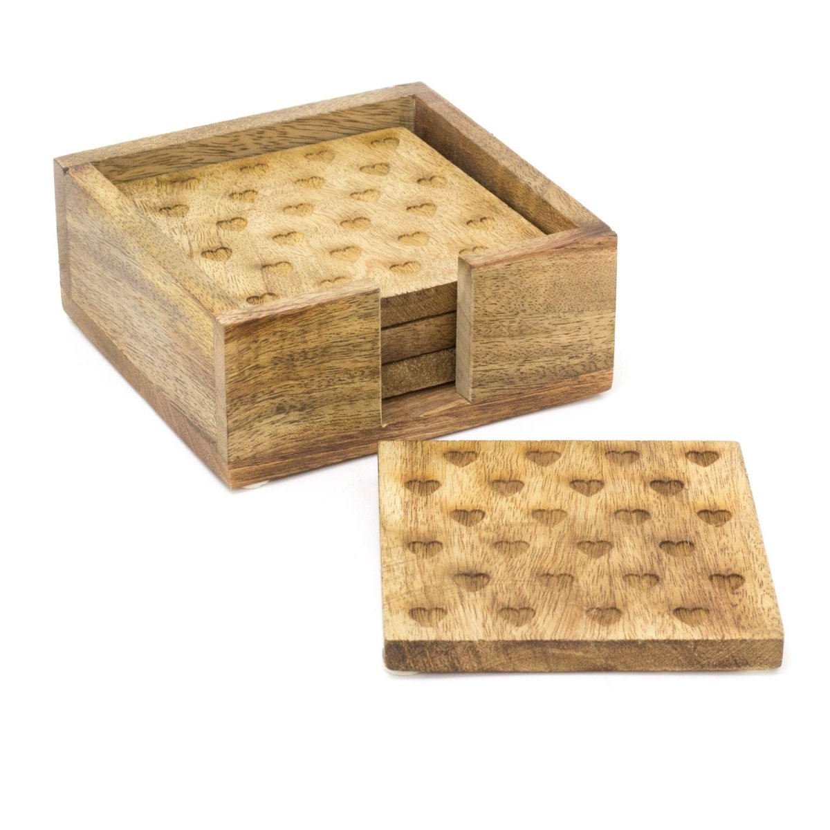 DRINKS COASTER SET | Practical, durable and love-ly! Our set of four wooden coasters will add a touch of rustic charm to your dining table or coffee table, whilst also protecting your surfaces from ring marks and condensation