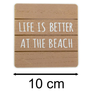 Set of 4 Wooden Seashore Coasters & Beach Hut Holder | Nautical Quotes Coasters