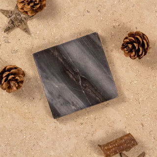 Set Of 4 Black Marble Coasters | 4 Piece Square Natural Stone Marble Coaster Set