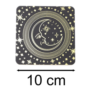6 Piece Sun & Moon Coasters | Celestial Square Wooden Mats for Drinks Cups Mugs