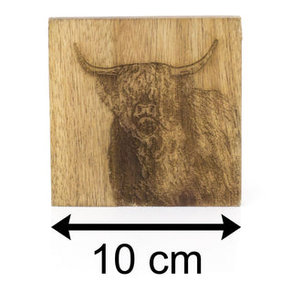 Set Of 4 Mango Wood Heart Embossed Coasters | 4 Piece Rustic Coasters With Holder Cup Mug Table Mats | Wooden Square Drinks Coaster Set