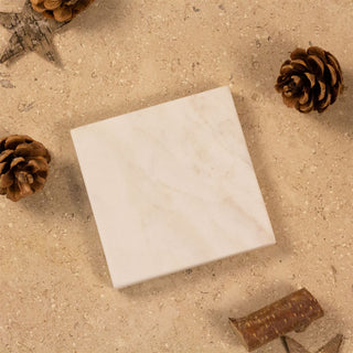Set Of 4 White Marble Coasters | 4 Piece Square Natural Stone Marble Coaster Set