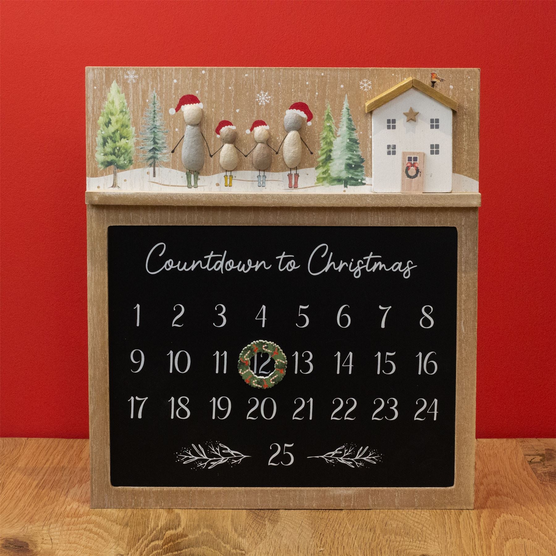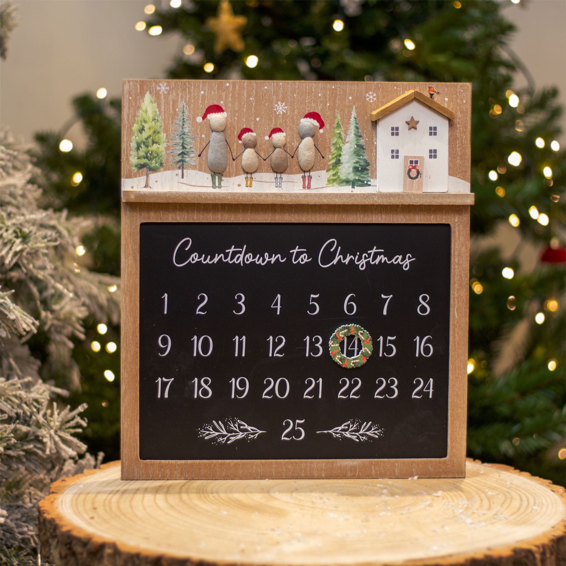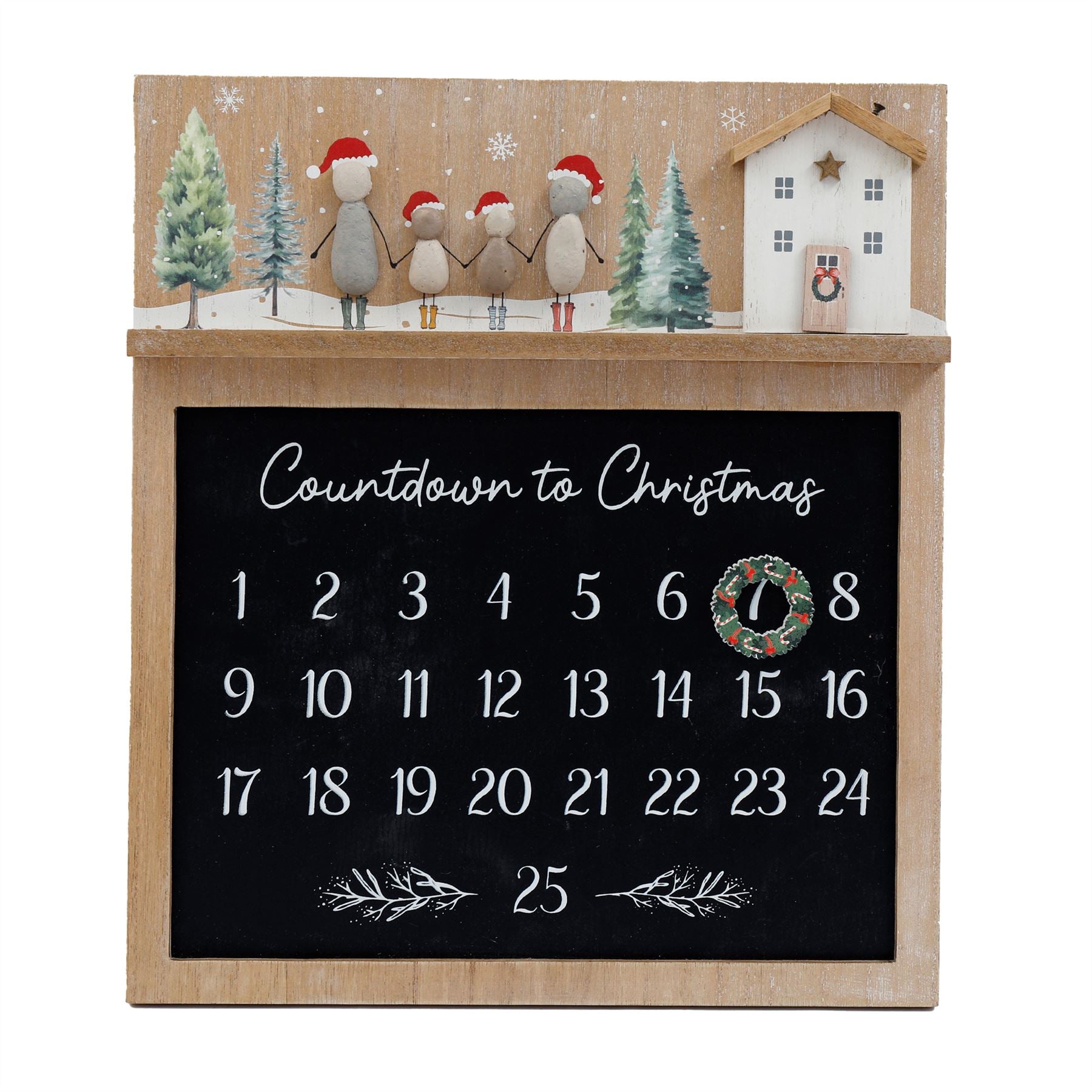 CHRISTMAS ADVENT CALENDAR | Embrace the festive season with this charming advent calendar plaque. Adorned with a sweet pebble family and wooden house motif, this calendar isn't just functional-it’s a piece of decor that celebrates family and festive traditions