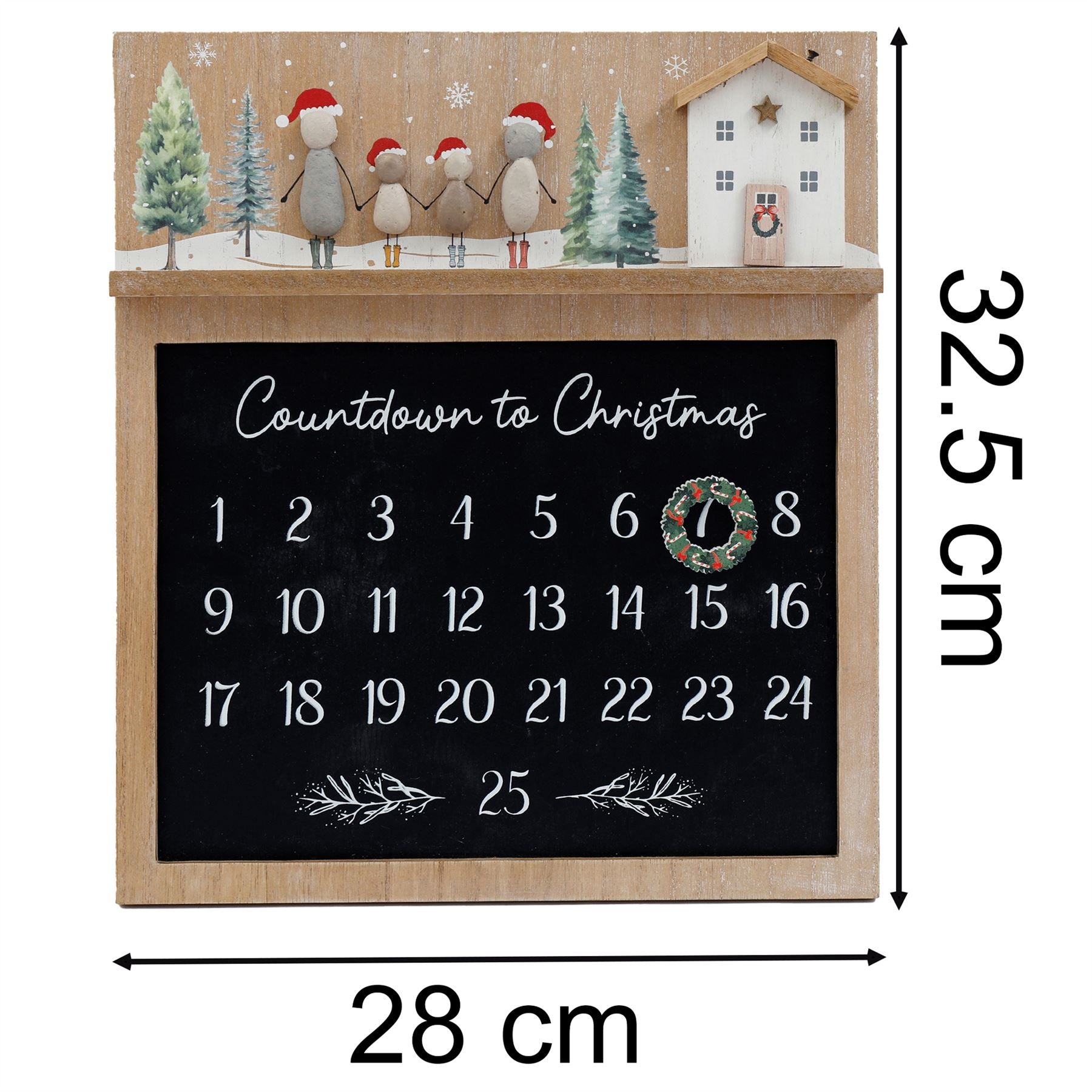 CHRISTMAS DECORATION | The magnetic blackboard-style calendar makes counting down to Christmas a delightful daily activity. Simply move the wooden wreath marker to the next number each day for a touch of festive magic