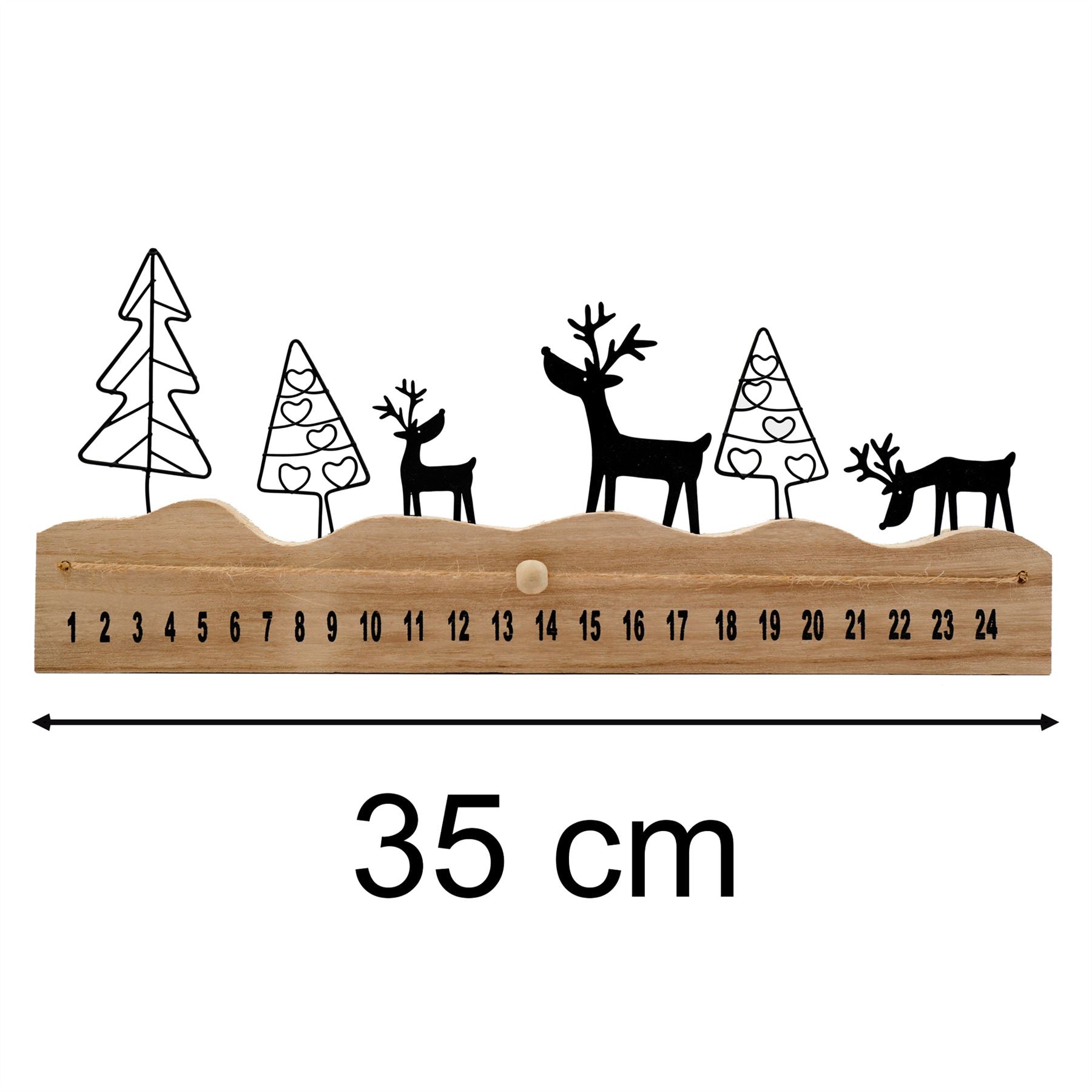 REINDEER ADVENT CALENDAR | Celebrate the festive season with our charming Reindeer Scene Christmas Advent Calendar. This calendar features an enchanting black metal reindeer family set against a forest backdrop, all elegantly mounted on a wooden base. A perfect addition to your holiday decor