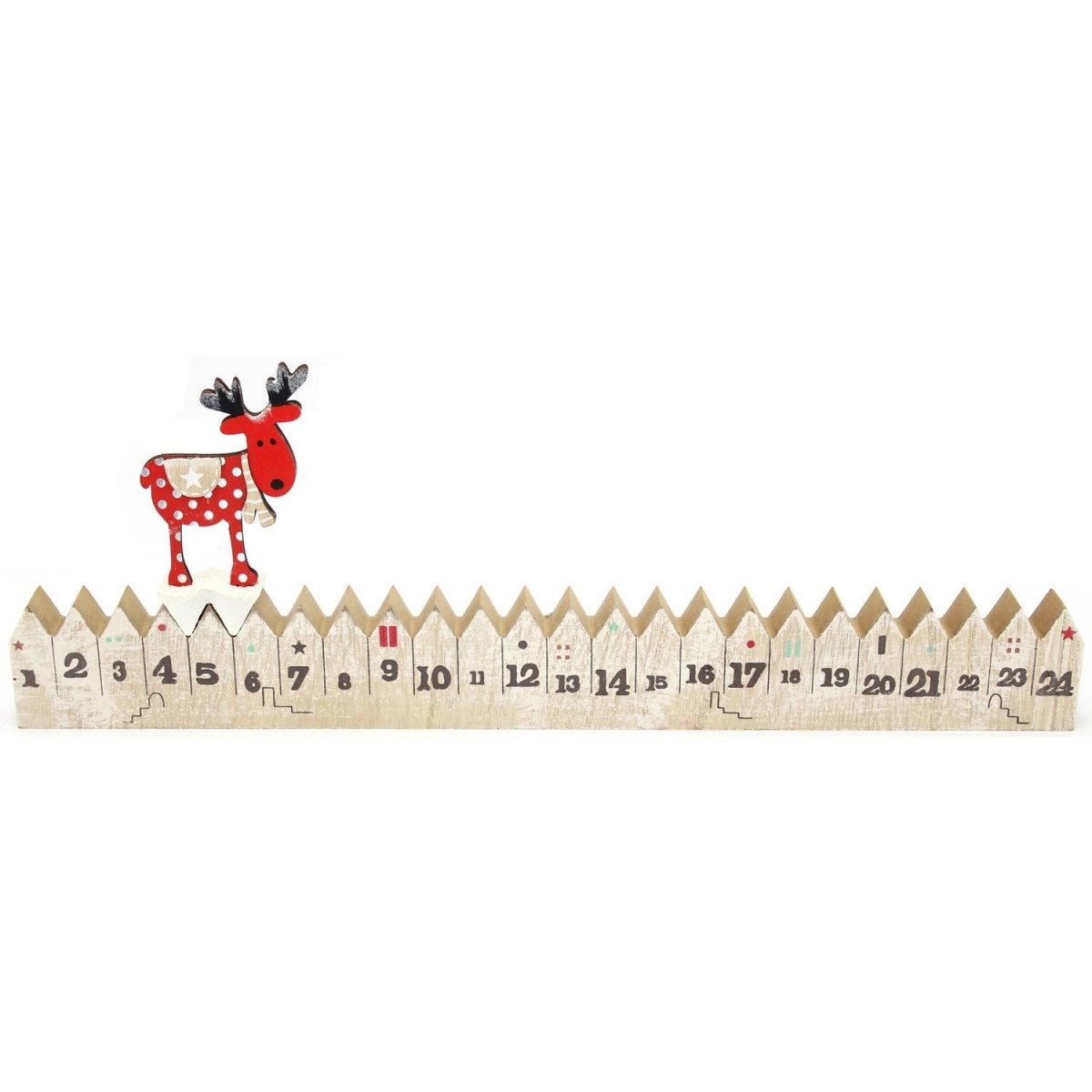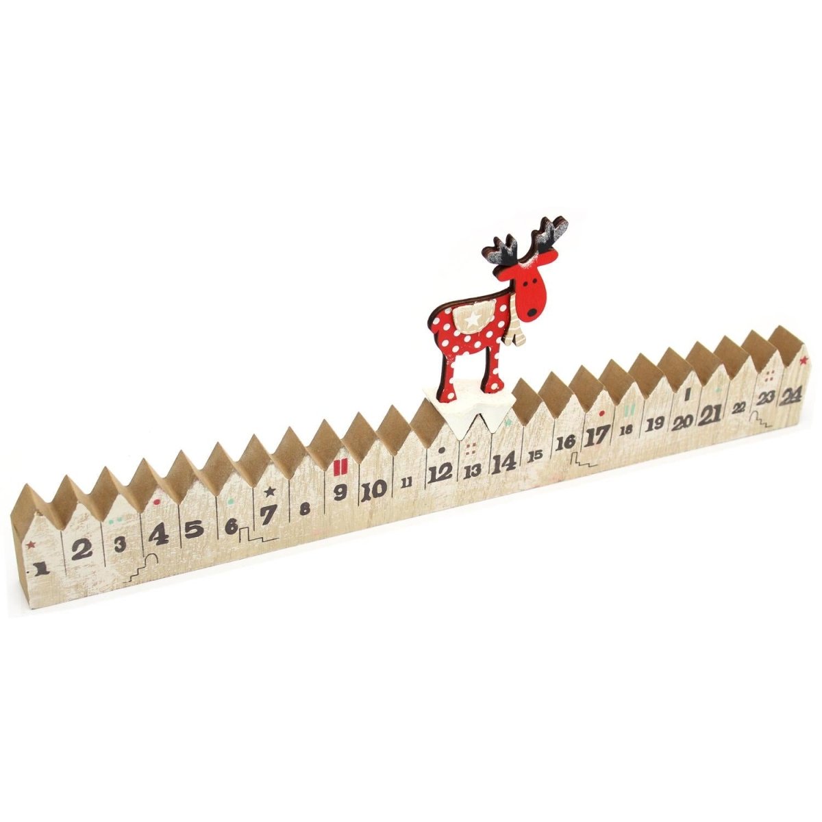 A traditional free standing advent calendar, featuring a row of houses numbered 1-24. Enjoy moving the reindeer further along the rooftops with each day that passes!