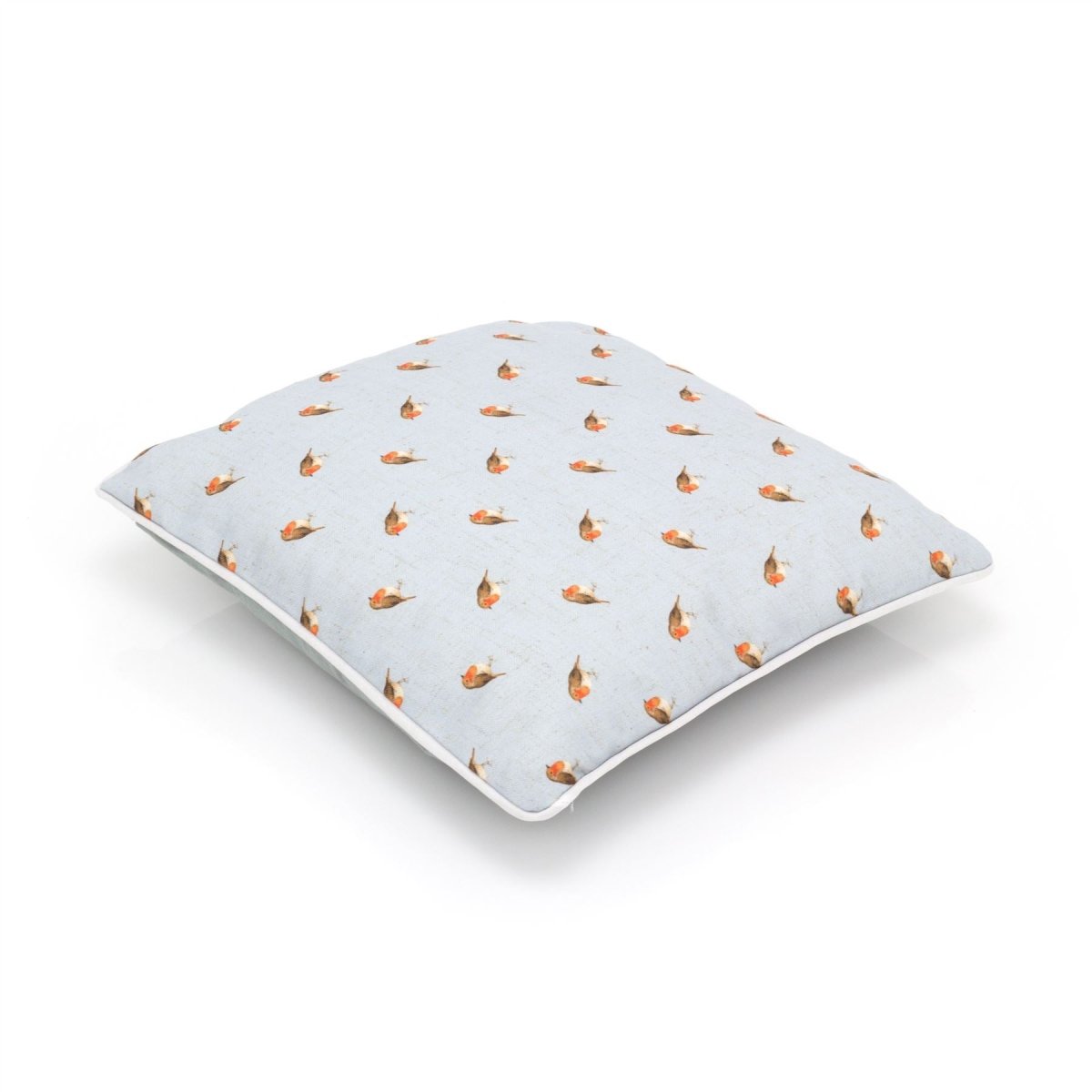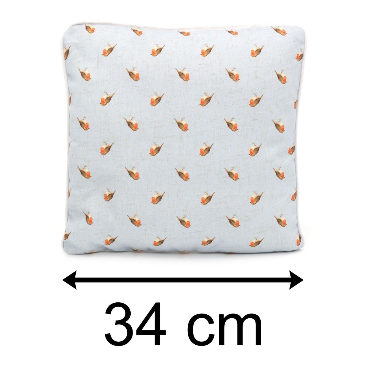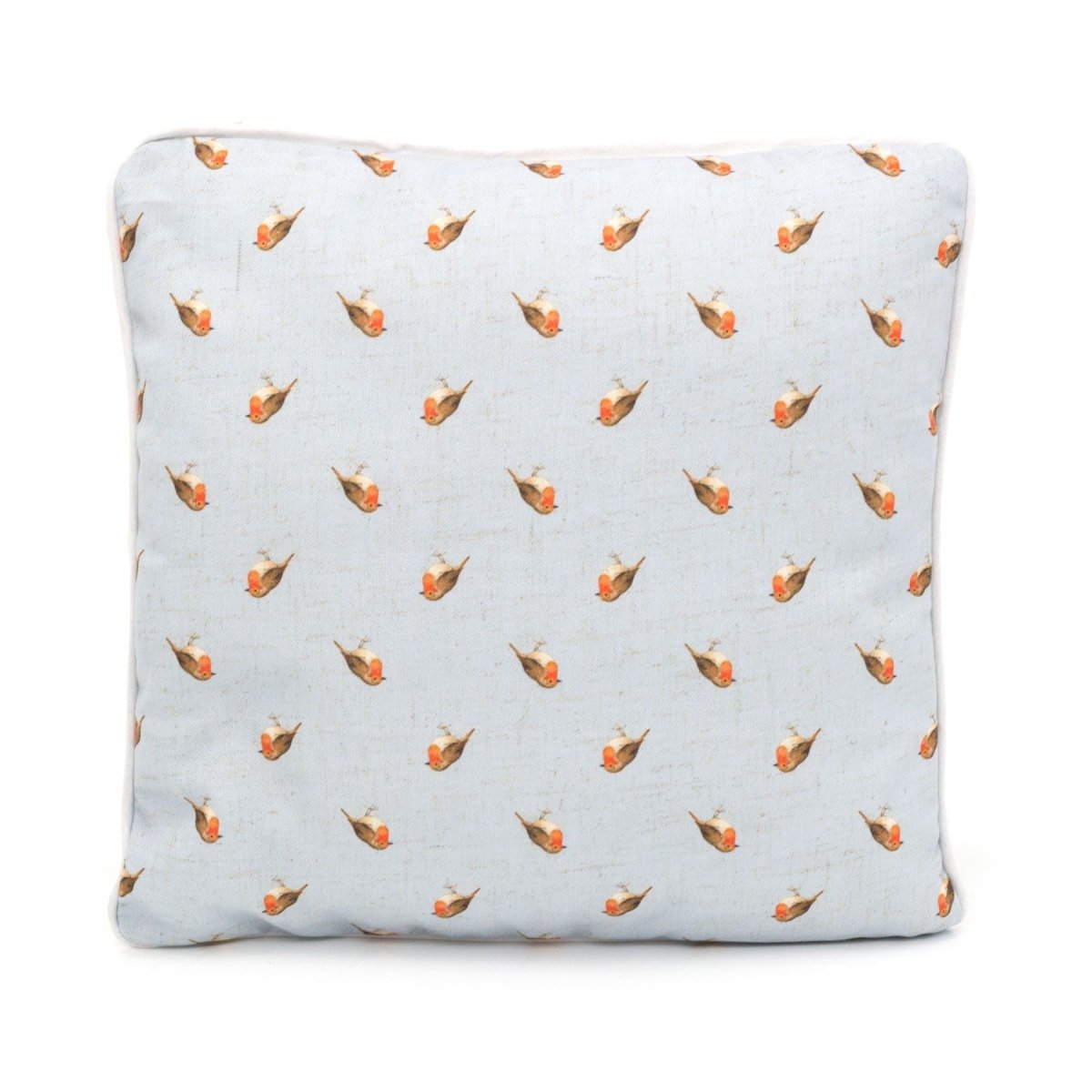 THROW PILLOW: A gorgeous linen fabric with a beautiful repeat print of pretty robin redbreasts. Ideal accessory for your sofa, bed or garden furniture