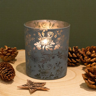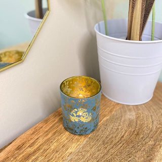 Large Botanical Love Tealight Holder | Blue Floral Glass Votive Candle Pot 10cm