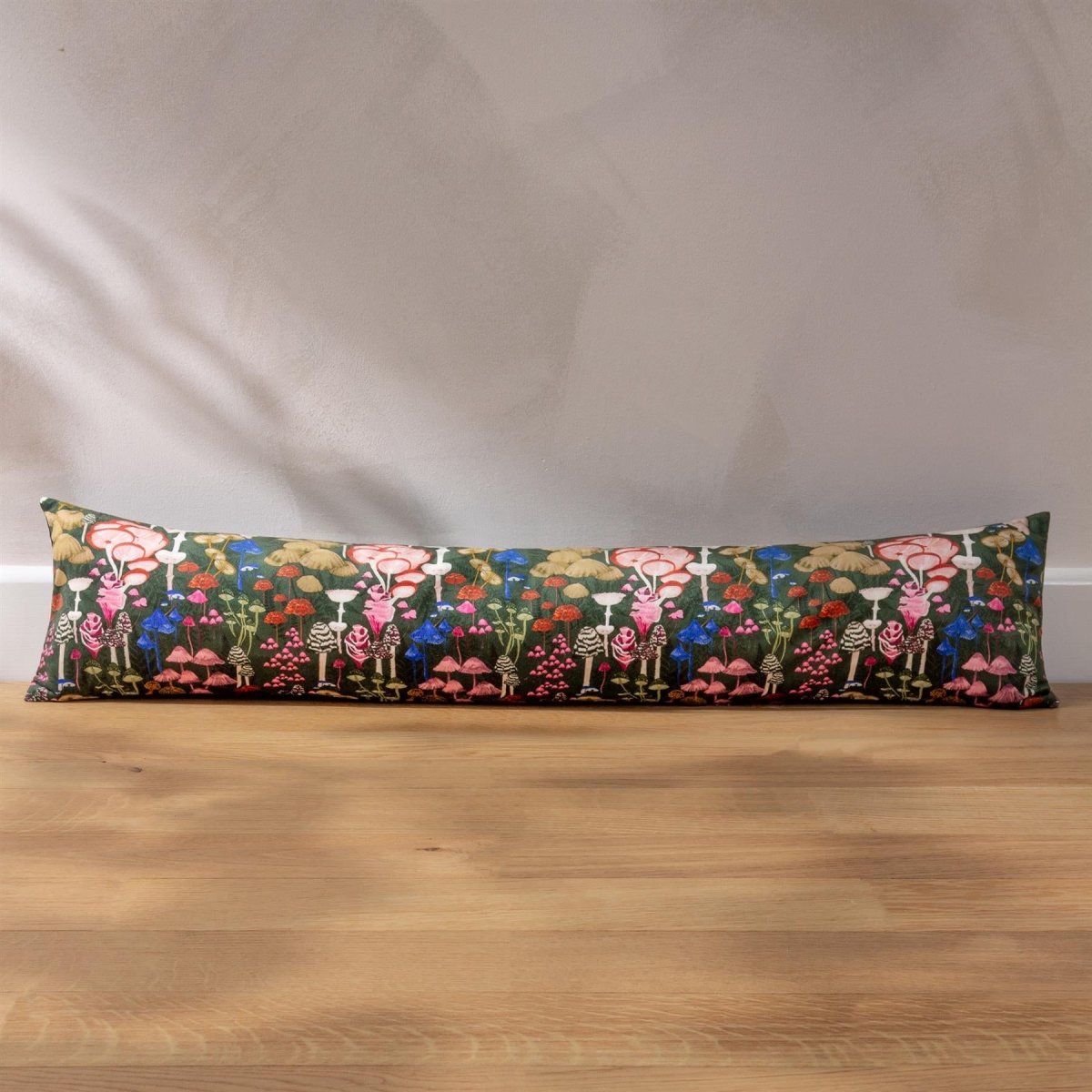MAGICAL MUSHROOM CHARM | Bring whimsical woodland vibes indoors with eye-catching mushrooms and fungi draught excluder on a striking, colourful background