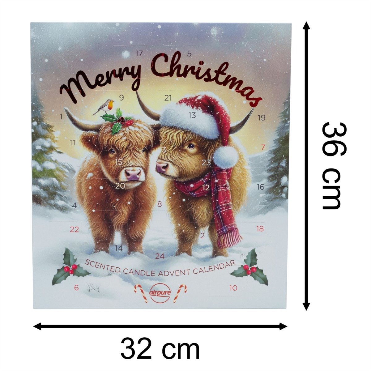 Countdown to Christmas with 24 scented candles in festive fragrances. The Airpure Highland Cow Advent Calendar adds warmth, charm, and a cosy glow to every December day