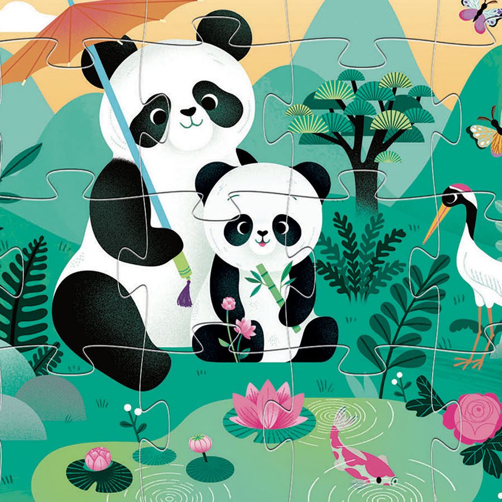 Puzzle design: Children will adore piecing together this adorable scene of Leo the Panda with his mother, surrounded by the beauty of nature.