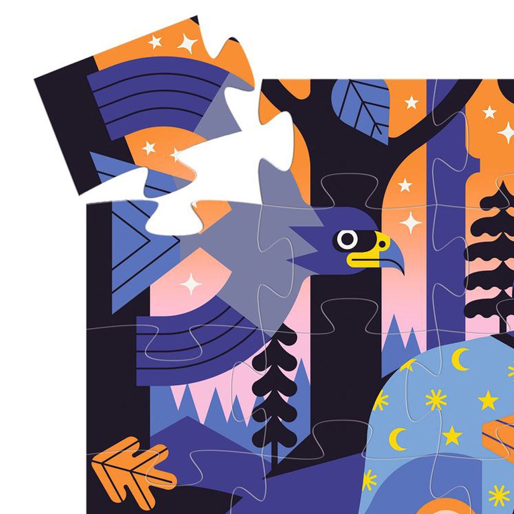 Introducing the delightful Puzzle - a 36-piece jigsaw puzzle crafted with children aged 4 years and above in mind. Immerse yourself in a captivating illustration of an enchanted forest at night, where a magician and his little friends bask in the radiant glow of his crystal scepter. Adding an extra layer of intrigue and charm, the puzzle takes the shape of a wizard, making the experience even more enchanting.