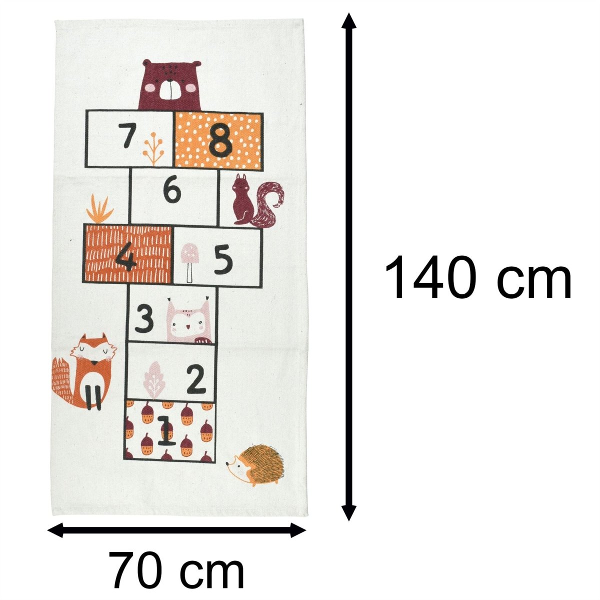 CHILDRENS BEDROOM RUGS | Enhance the look of your child's bedroom, nursery or playroom effortlessly with this gorgeous cotton children's bedroom rug. This delightful scatter rug is accented with adorable forest friends and a fun interactive hopscotch design