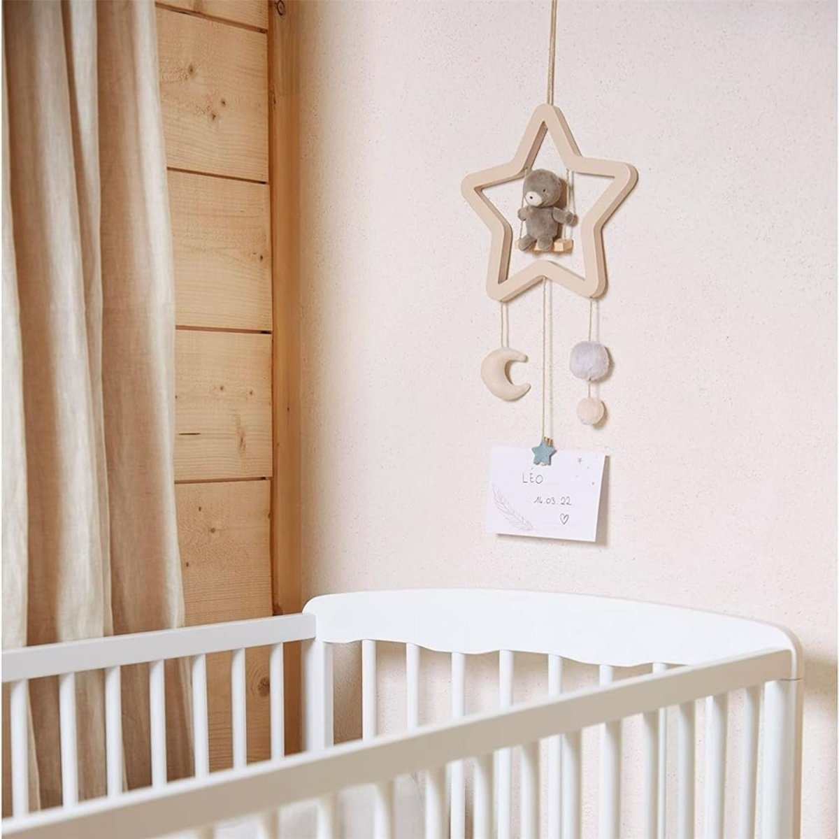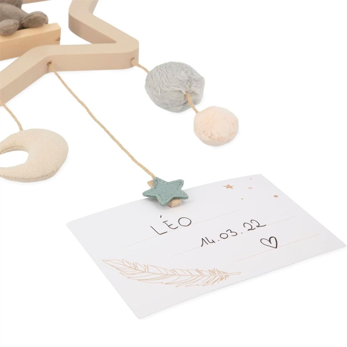 PERSONALISED TOUCH: Complete with a small card, this cot mobile allows for personalisation with a sweet message or a cherished photo, adding a customised touch to the nursery decor.