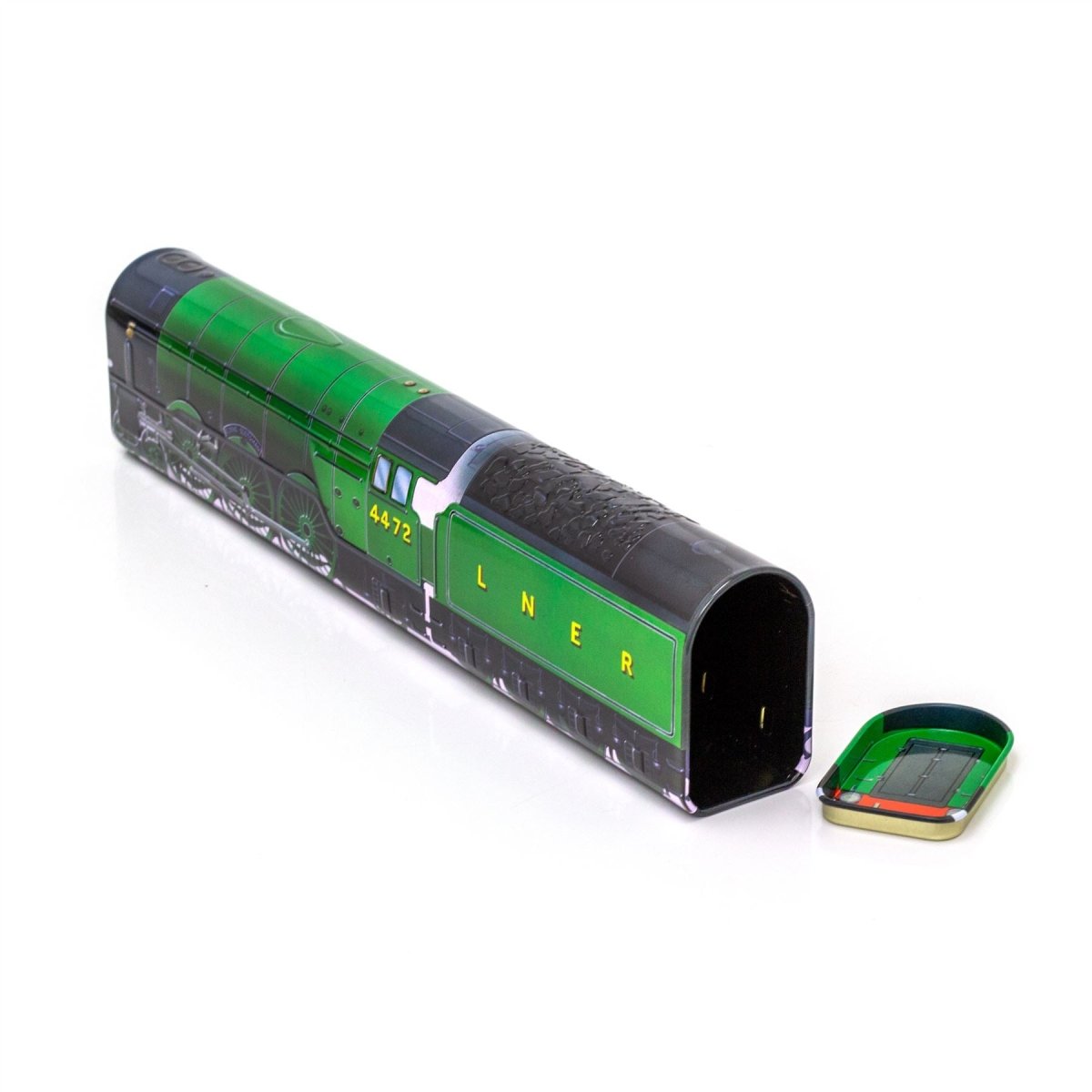 Whether you're a train enthusiast or simply looking for a stylish storage solution, our Flying Scotsman shaped tin is a must-have item